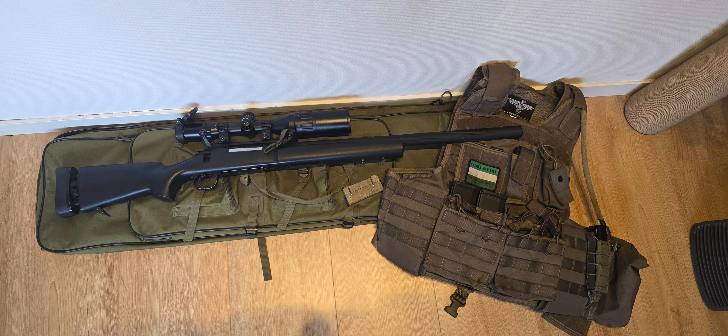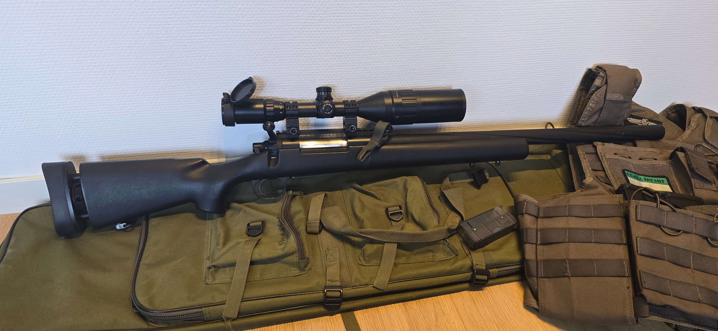 Komt met 4 magazijnen en een losse linkshandige bolt voor de links-handige onder ons. Prijs incl scope. Excl tas en tactical vest. (Zijn wel los te koop)