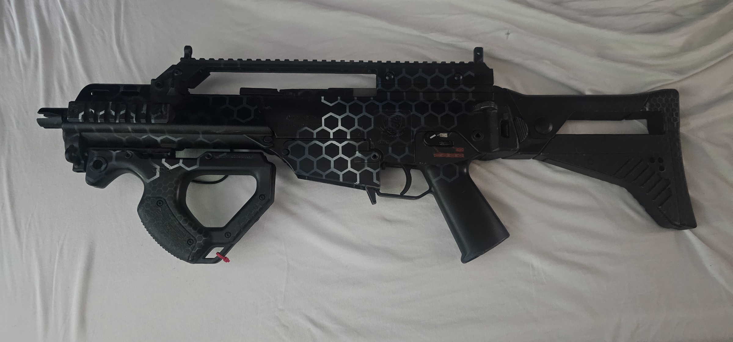 Hierbij verkoop ik mijn S&T G36 met electric blow back. Ik verkoop de replica omdat ik deze niet meer gebruik door dat ik de overstap naar hpa heb gemaakt. De replica is door me zelf ge spray paint. Replica schiet 1.15 joules en is skirm ready.