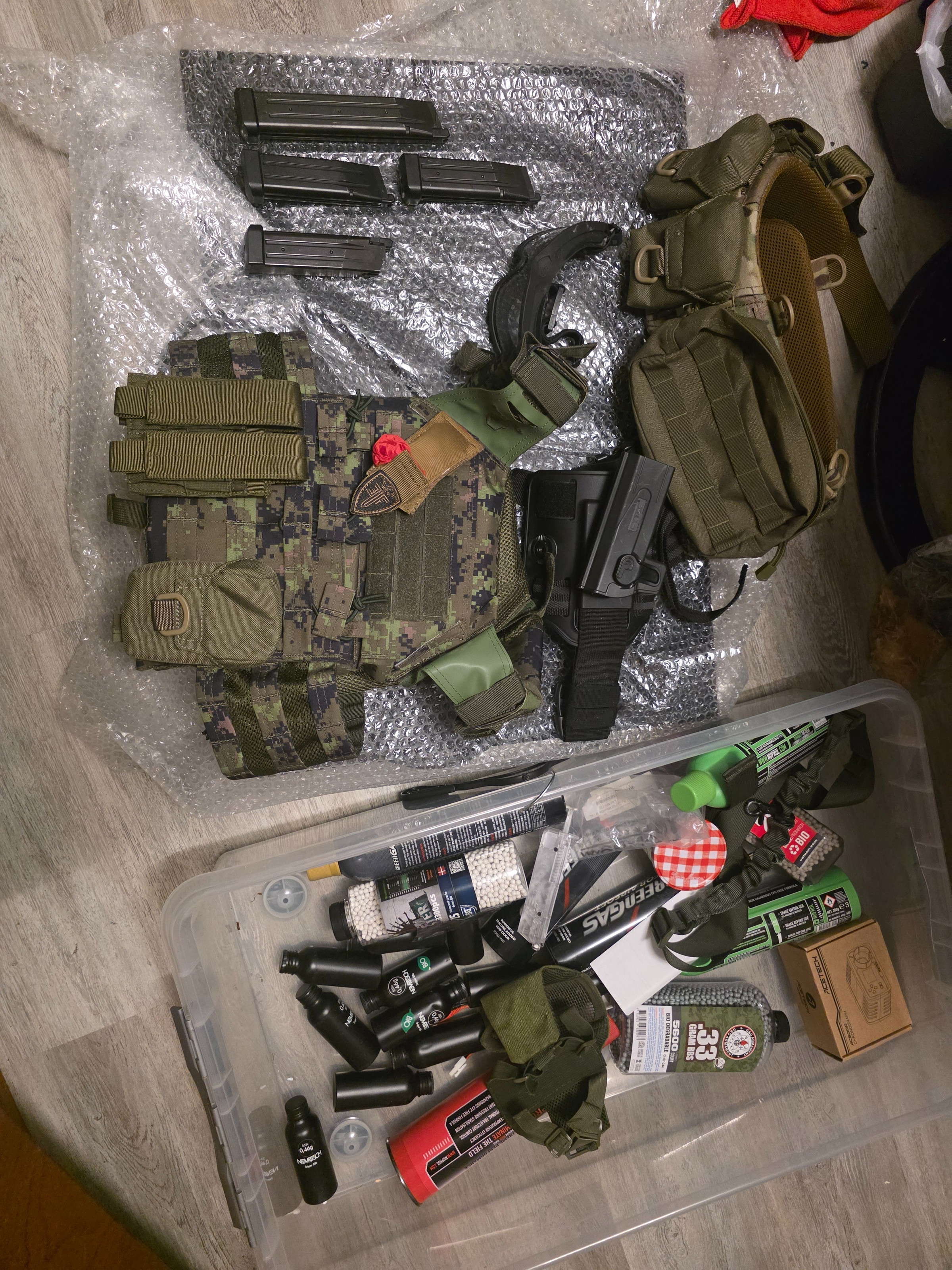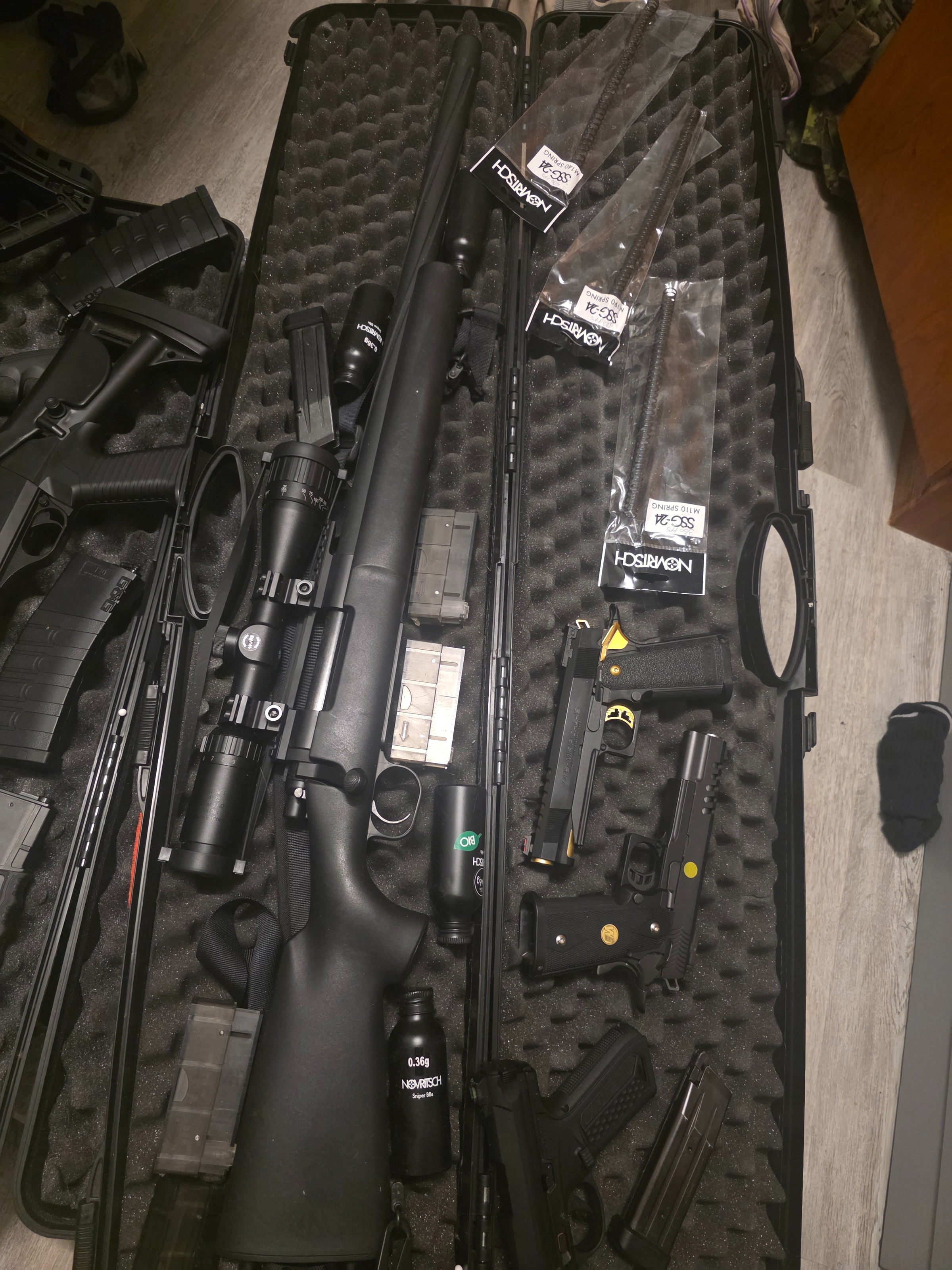 Met alle guns is maximaal 2 a 3 keer gespeeld maar hou er rekening mee dat een aantal van de GBB mag's lek zullen zijn maar wat makkelijk te fiksen is door nieuwe o ringetjes te plaatsen (dan kun je alvast oefenen😜), ik vind het zonde om maar te laten verstoffen aangezien ik nooit ga spelen terwijl iemand anders er heel veel plezier mee kan hebben. Let op de waarde van al deze spullen ligt ver boven de 1300 dus wie het eerst komt wie het eerst maalt.