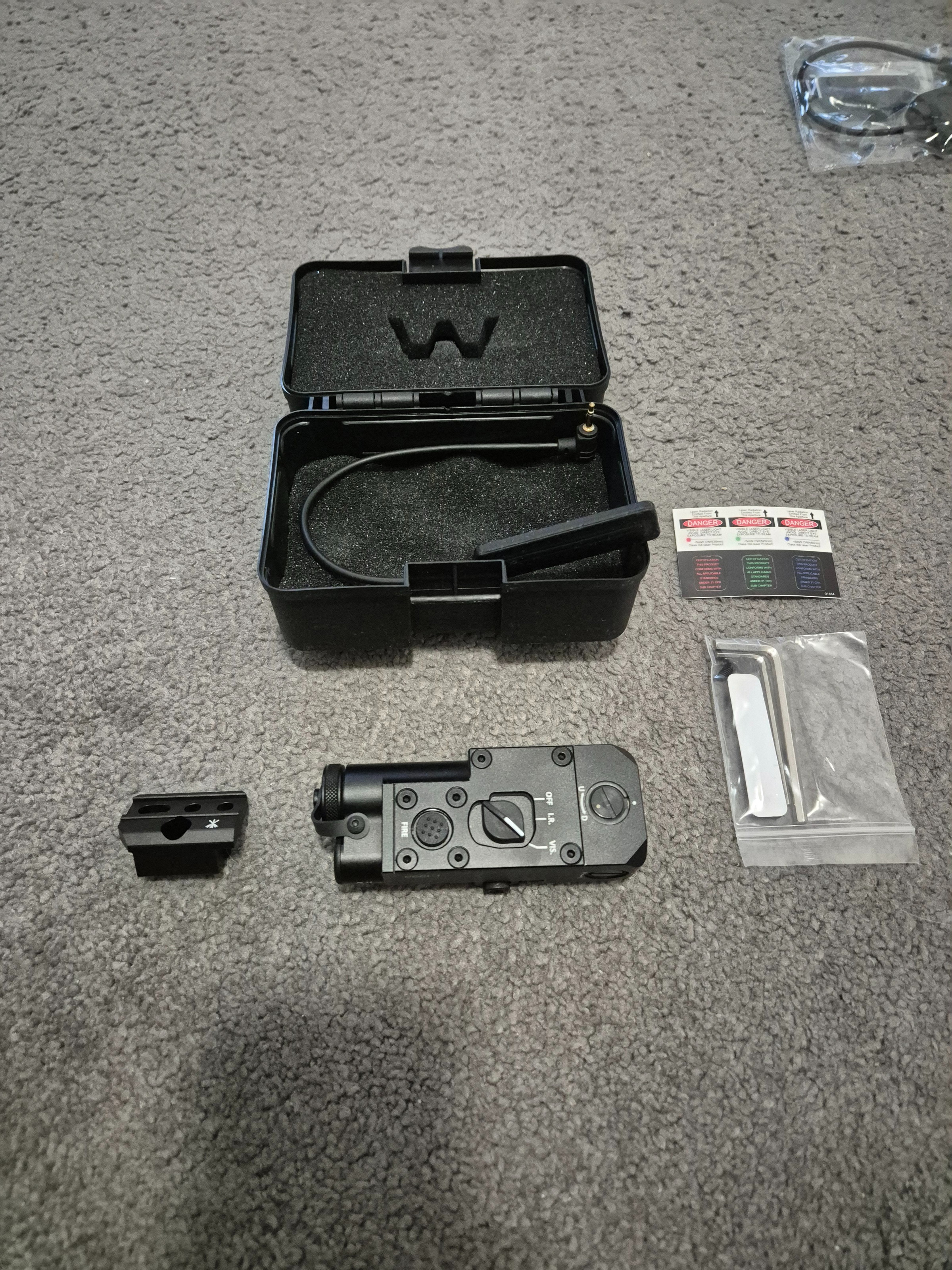 Steiner CQBL groene laser met IR functie. Betreft een hoogwaardige reproductie, volledig van metaal en met alle juiste functies en markeringen. Komt incl flashlight mount, die het mogelijk maakt een surefire of modlite direct aan de laser te bevestigen (zie eerste foto).