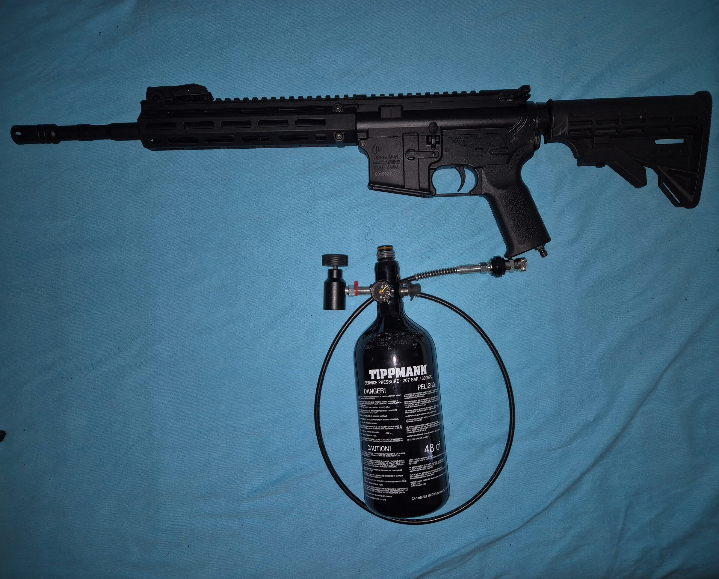 Tippmann m4 v2 + Tippmann line en 0.8L tank + Tournament lock.