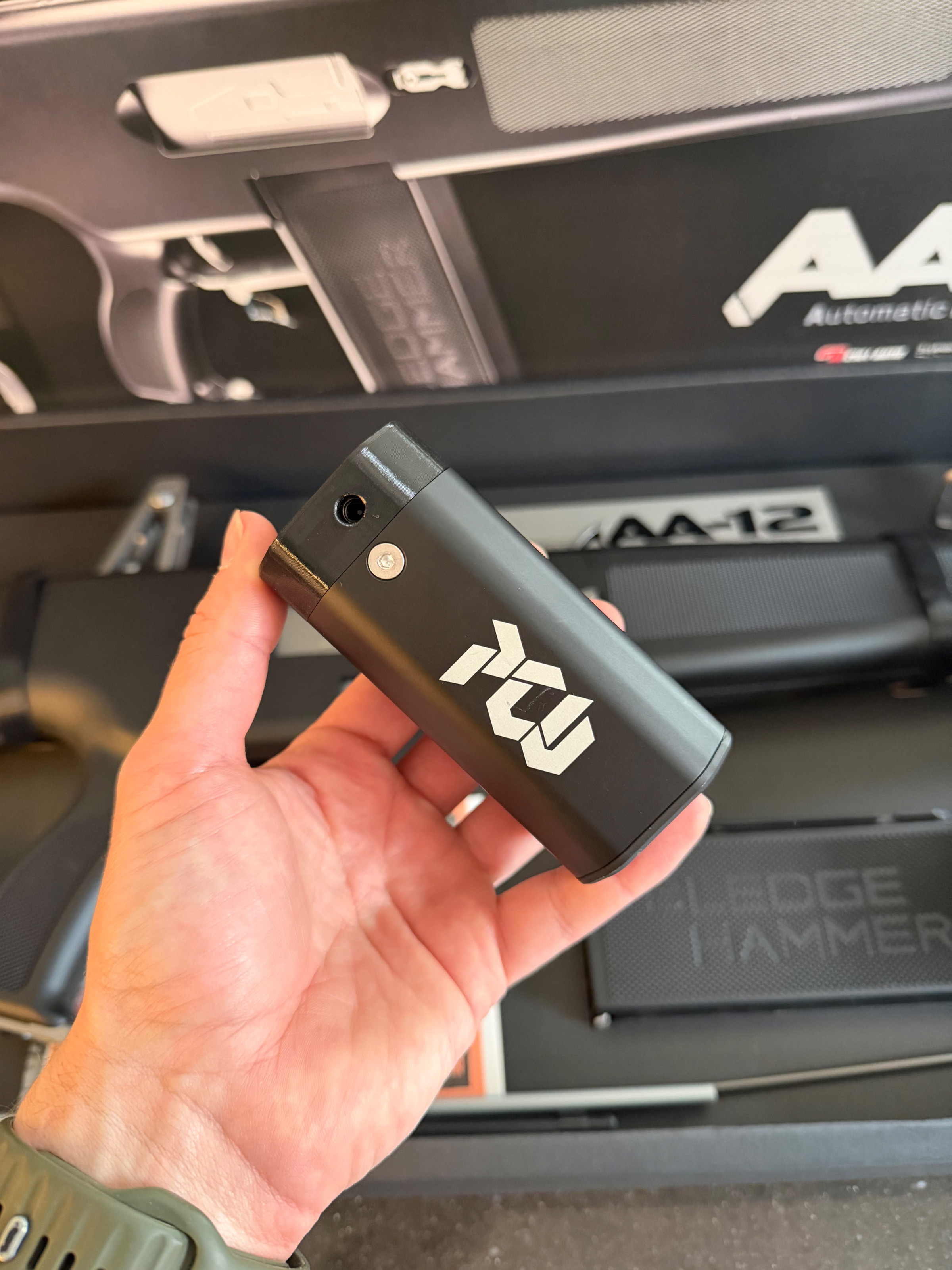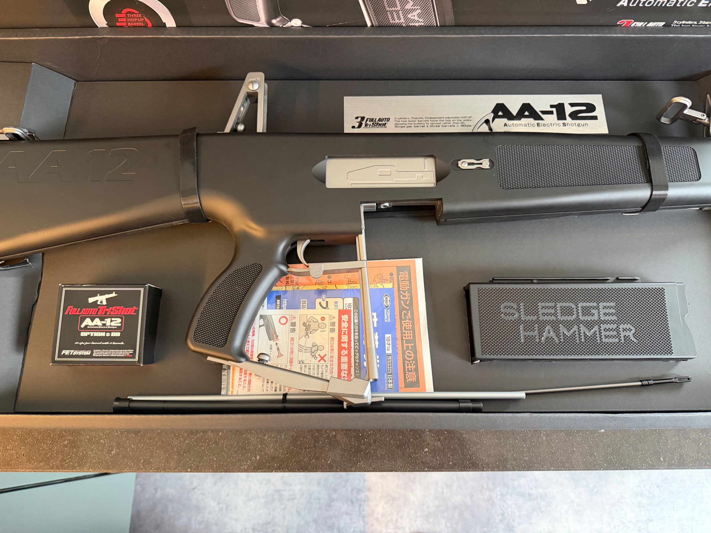 Om ruimte te maken voor wat nieuws hierbij te koop aangeboden deze Tokyo Marui AA12 met trommelmagazijn en Peetee Custom Ultimate tracer unit.