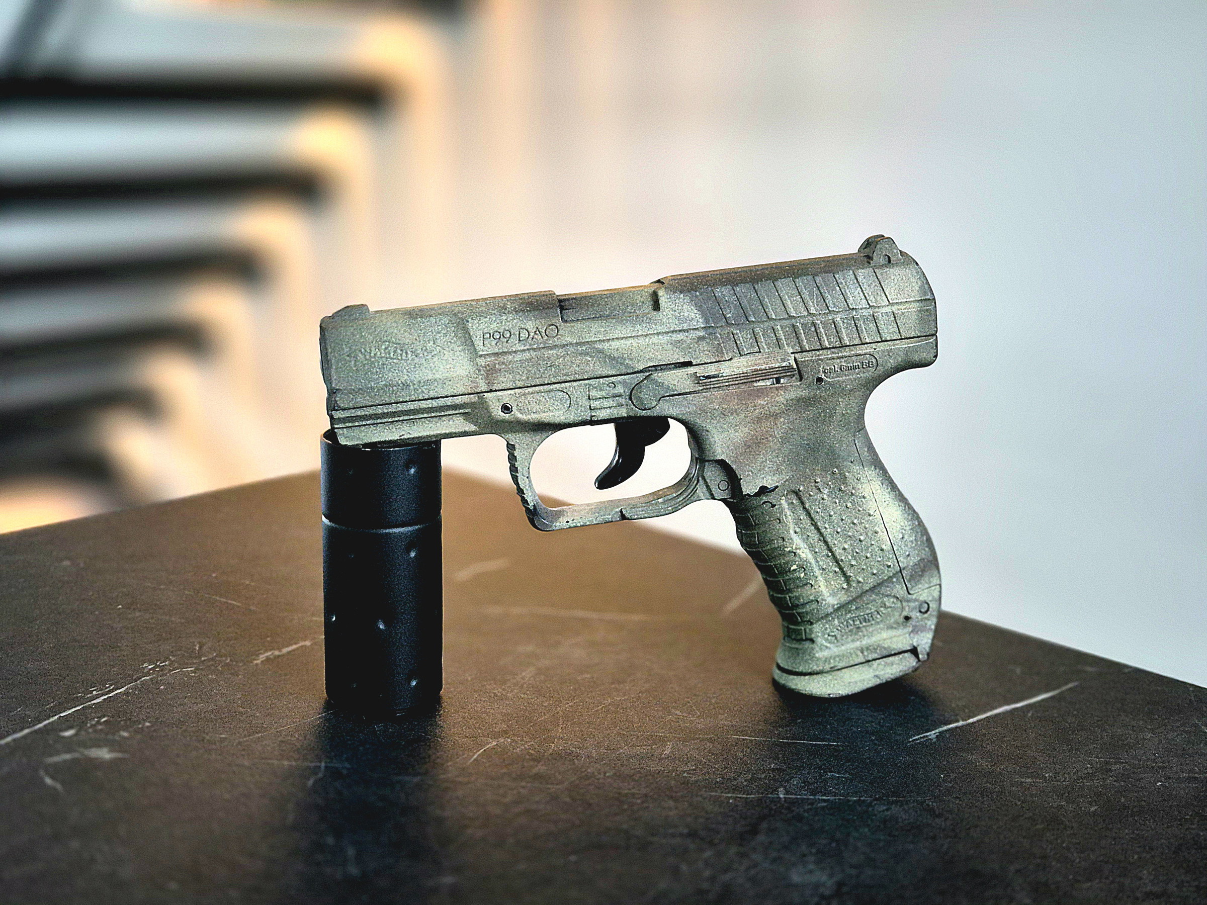 Zeer nette Walther P99 DAO op CO2. Alles werkt naar behoren. De pistol is voorzien van een mooie camo. De replica komt met 1x magazijn.