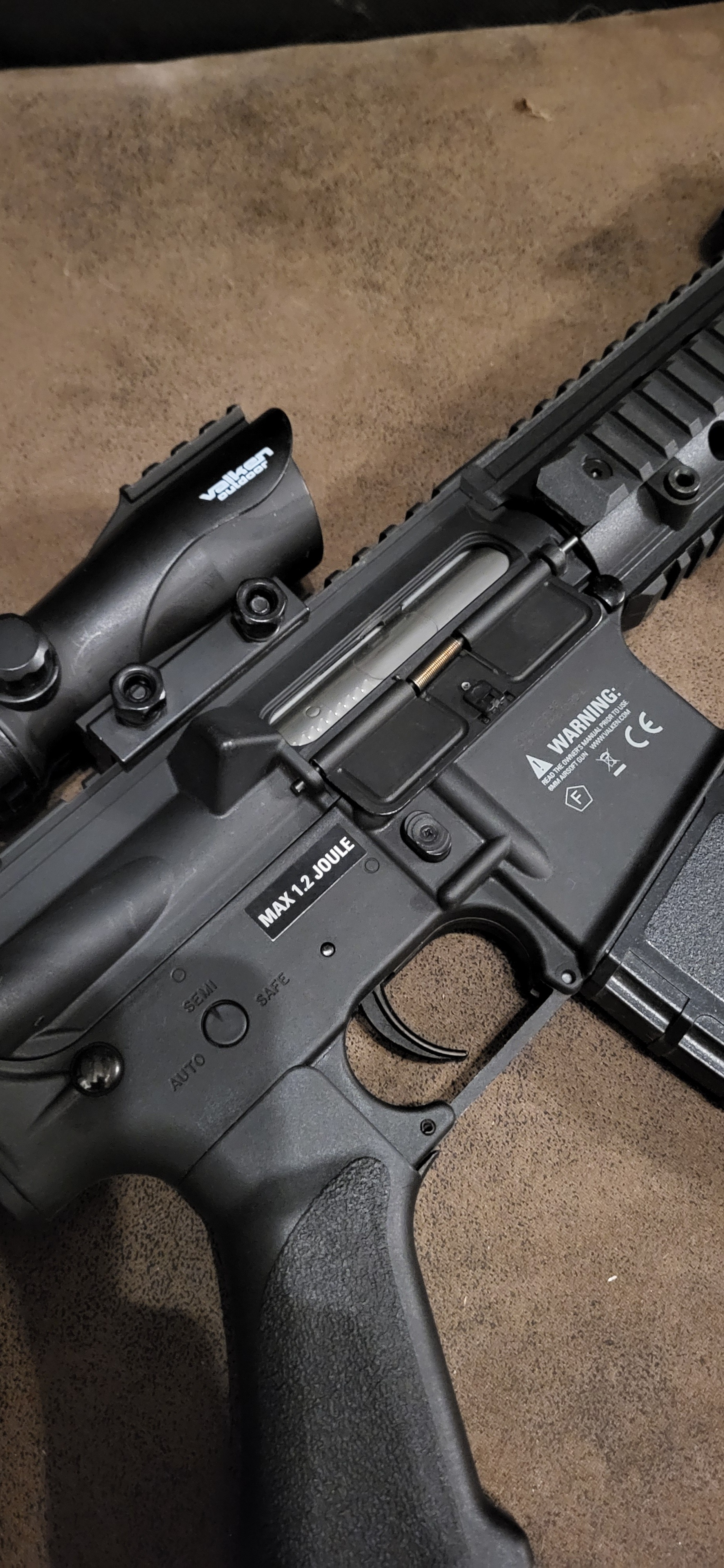 Die Waffe wurde häufiger gespielt, war aber immer zuverlässig. Leider ist ein kleines Plastikteil an der „Patronenauswurfklappe“ abgebrochen weswegen diese nicht mehr zu geht. Dies beinträchtig die Waffe aber nicht da es ein rein optischen Zweck erfüllt.