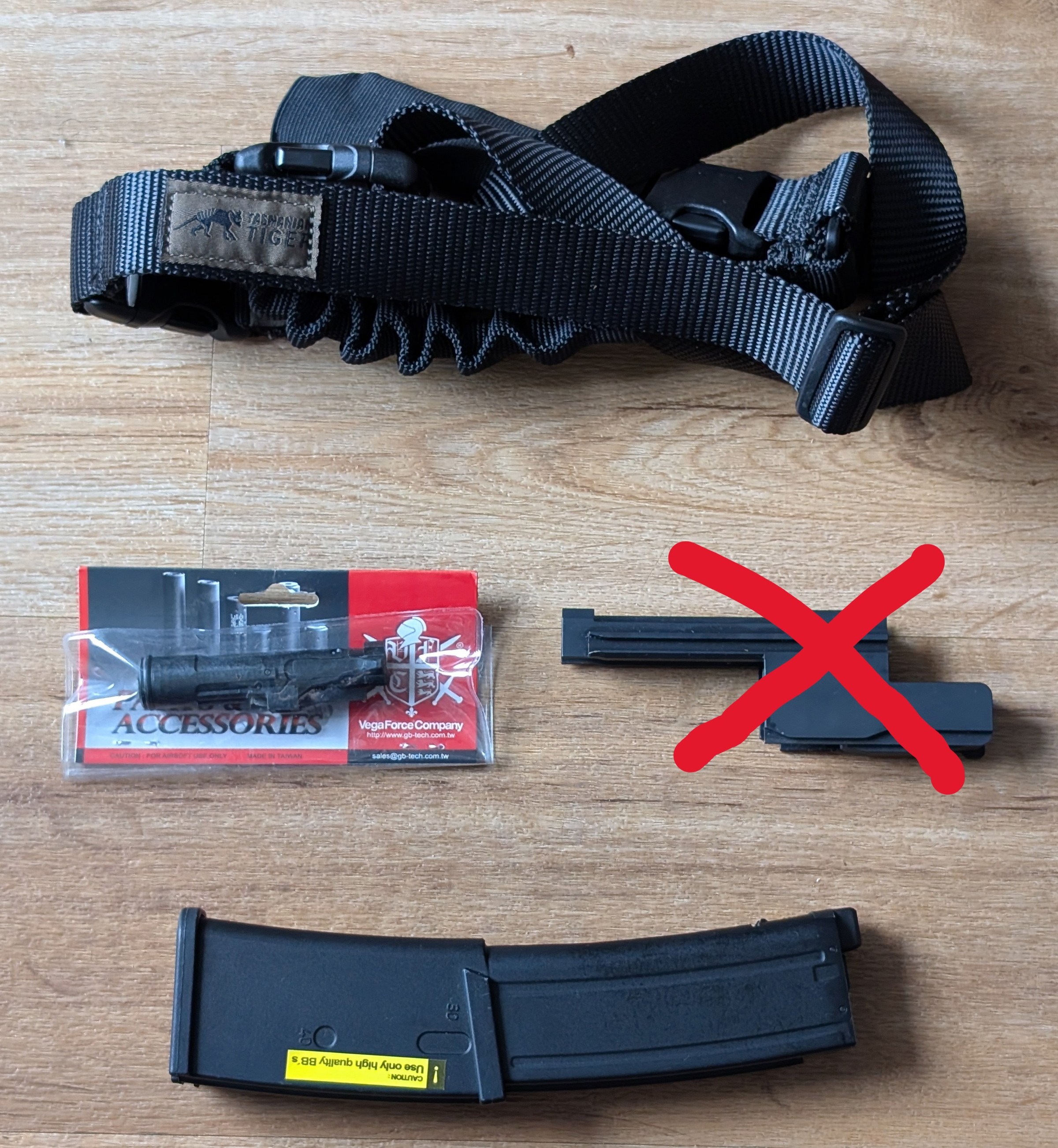 Geliefert wird sie mit einem kaum benutzten Ersatzmagazin, einem One-Point-Sling, einem Ersatz-Nozzle und dem HU-Tool.