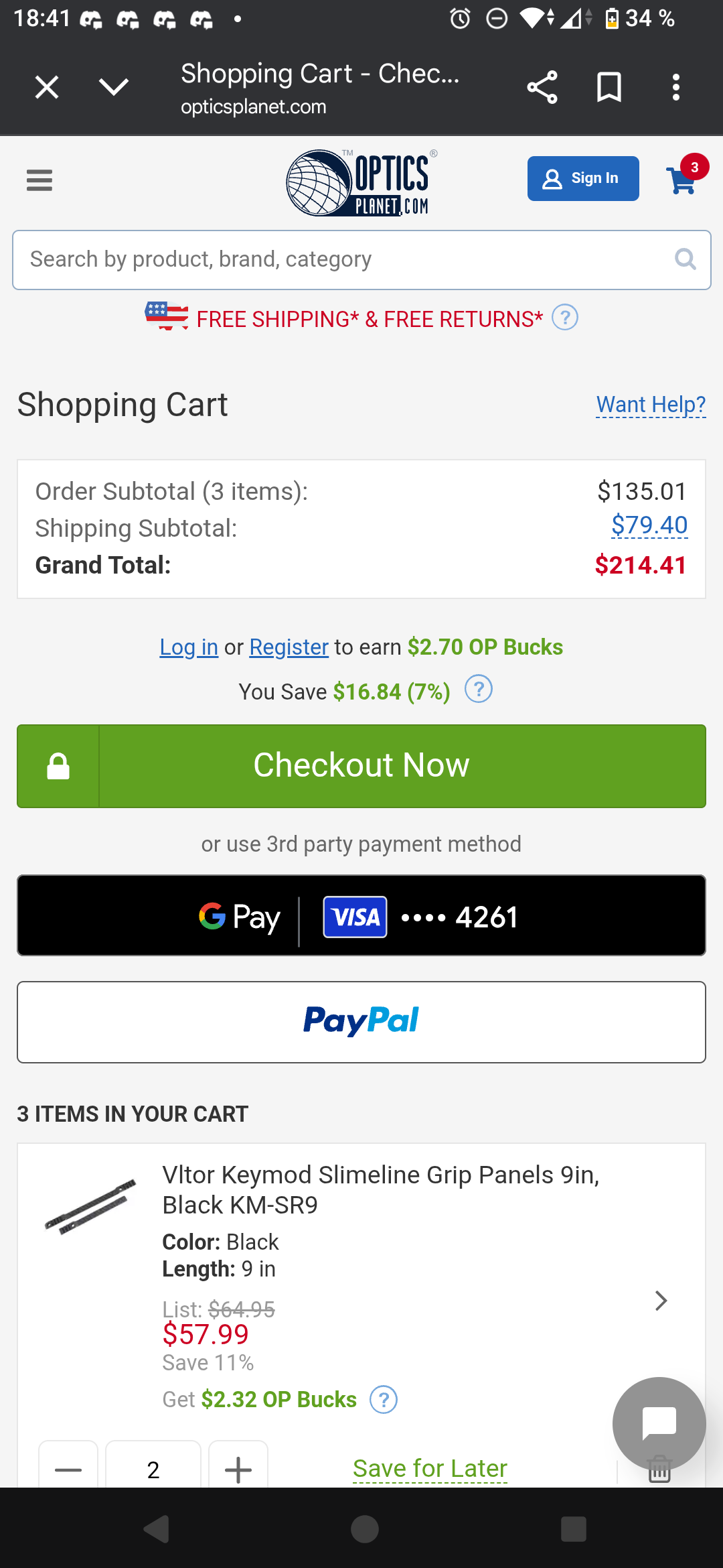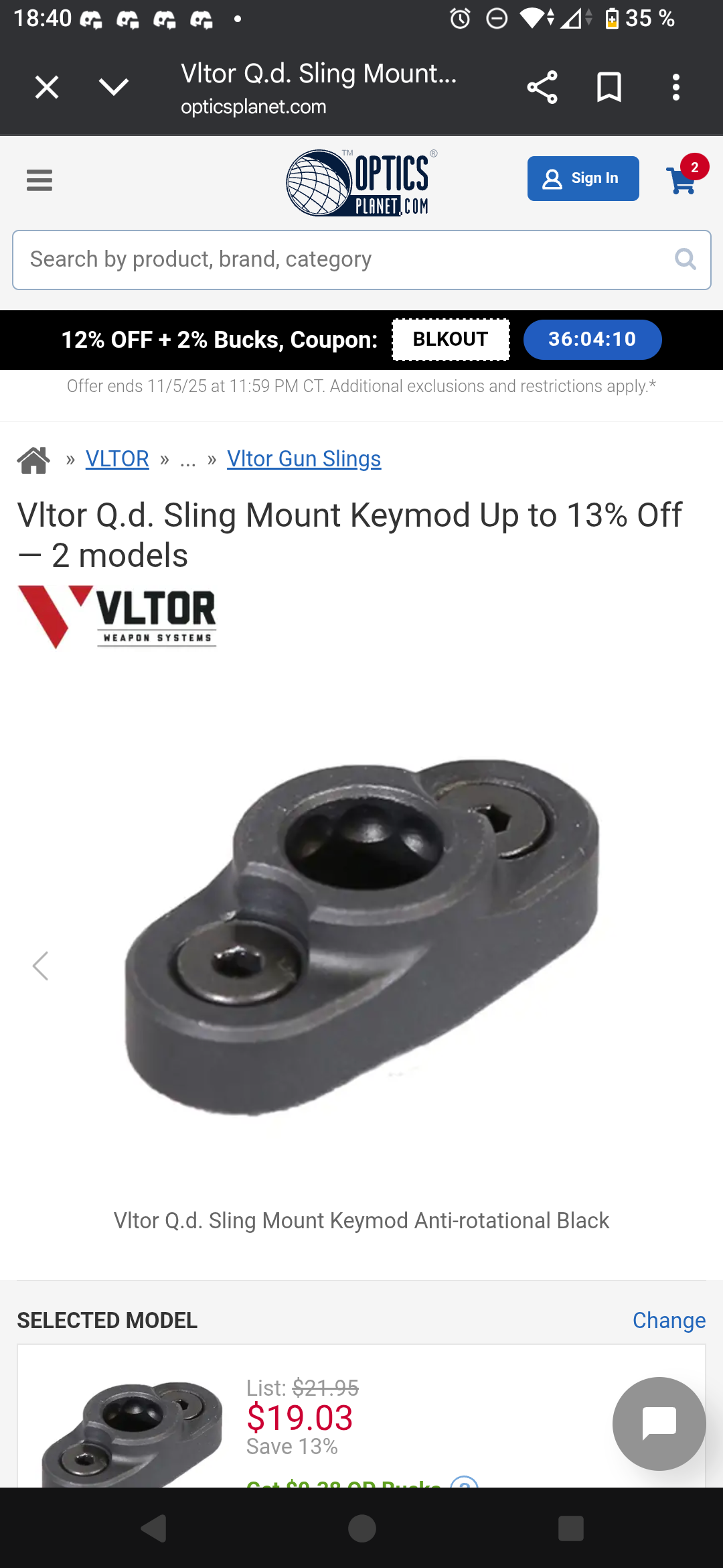 2 Vltor KM-SR9 slimline single rail 9" grip panel and 1 Vltor KM-QDL QD sling mount.