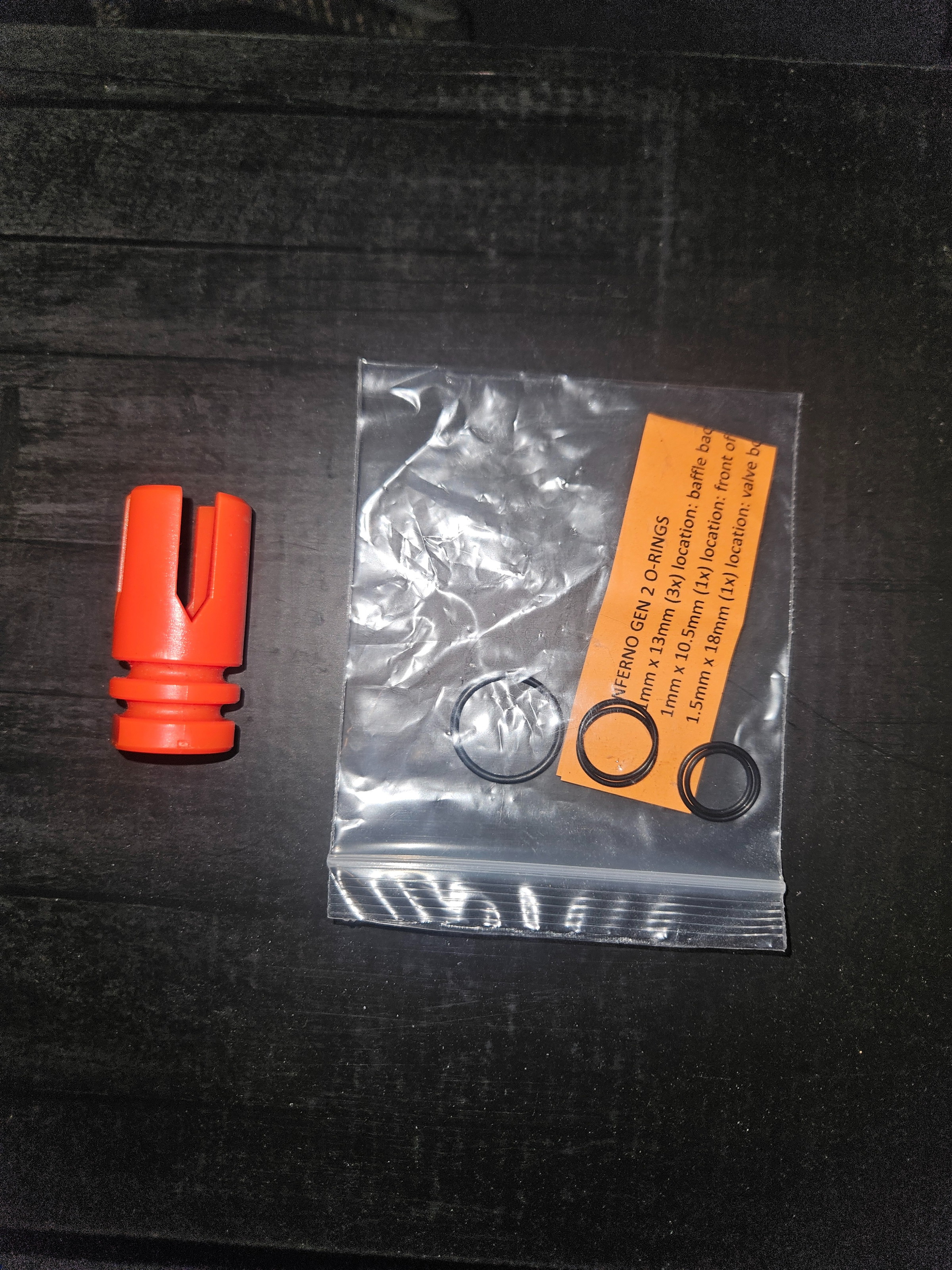 orginele doos met resever O-ringen. en orginele orangje flas hider.