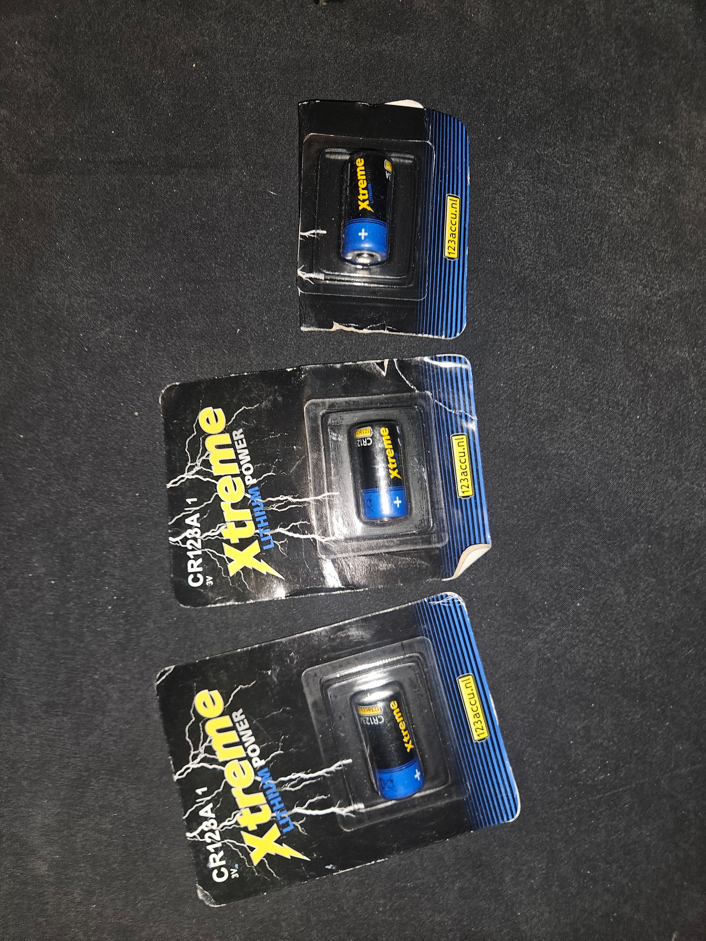 3x 3volt baterijen. in replica zitten ook al batterijen.