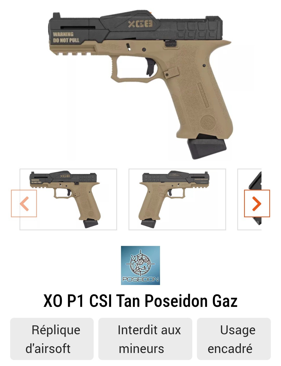 Je met en vente l'une de mes replique airsoft, c'est un GBB XO P1 Tan Poseidon Gaz,  et compatible au CO2, il est comme neuf J'ai utilisé d'une seul fois dans mon jardin pour le teste mais j'ai change d'avis j'aimerai aller sur autre chose donc jamais utilisé sur un terrain airsoft. C'est vendu avec boite et accessoires d'origine. A 110 euro / prix neuf 179,90 euro a venir cherche sur place, possible de teste sur place sans problème
