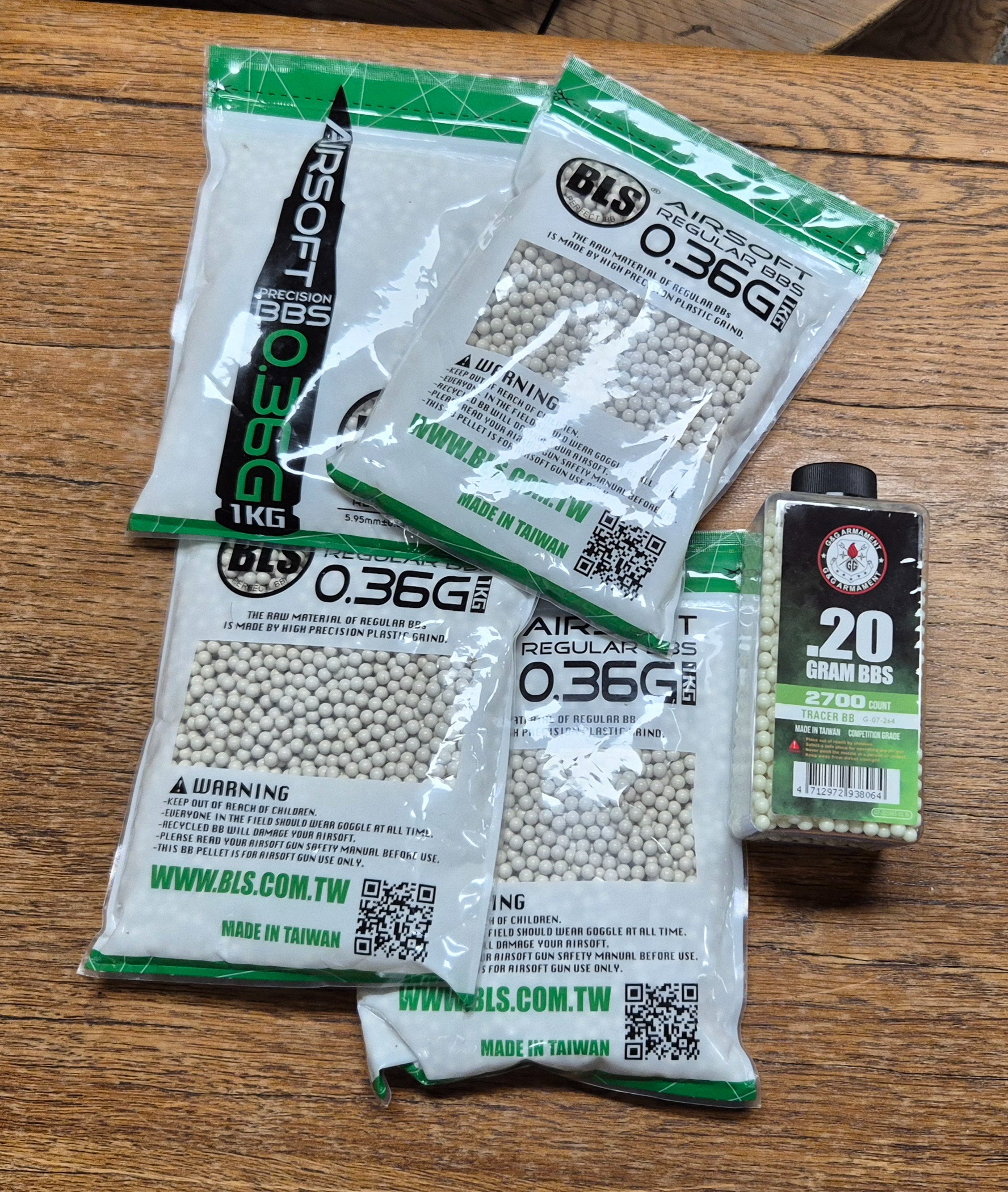 4 zakken bbs + fles tracers
