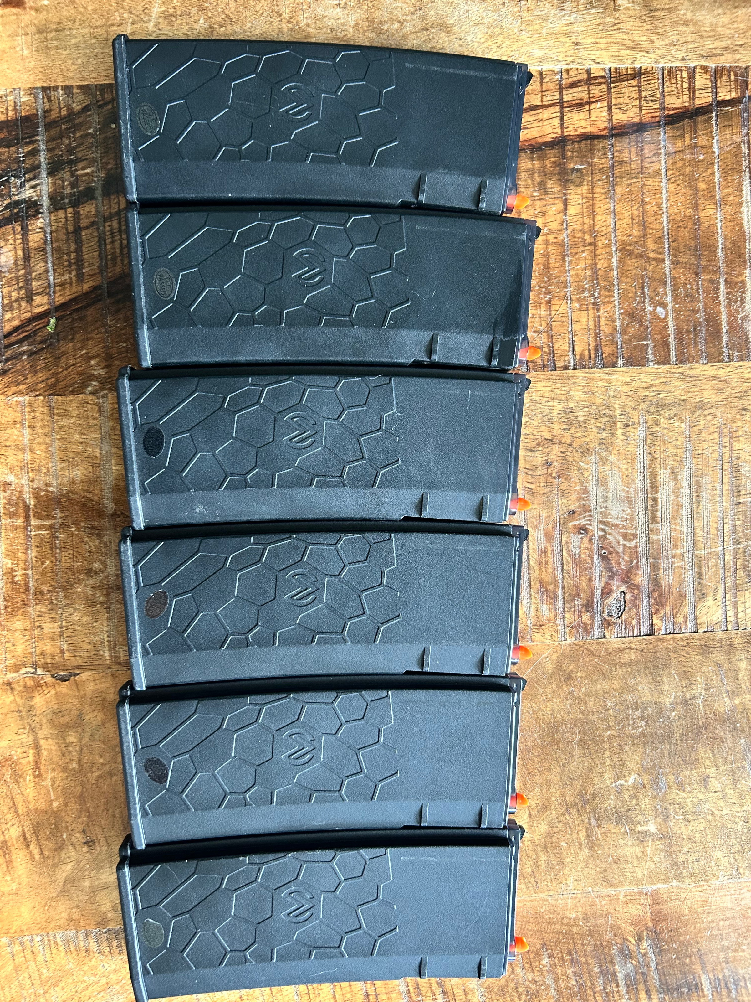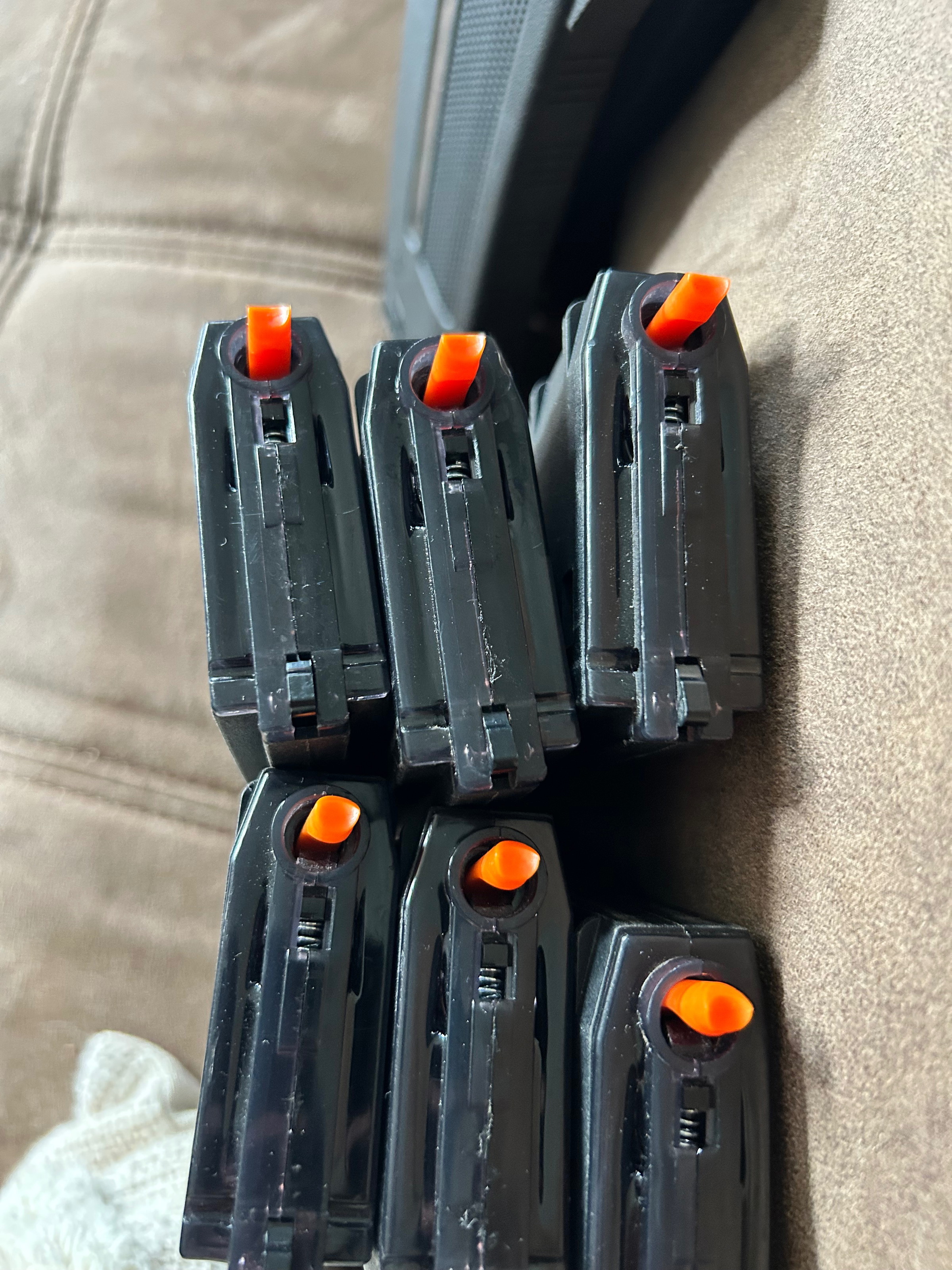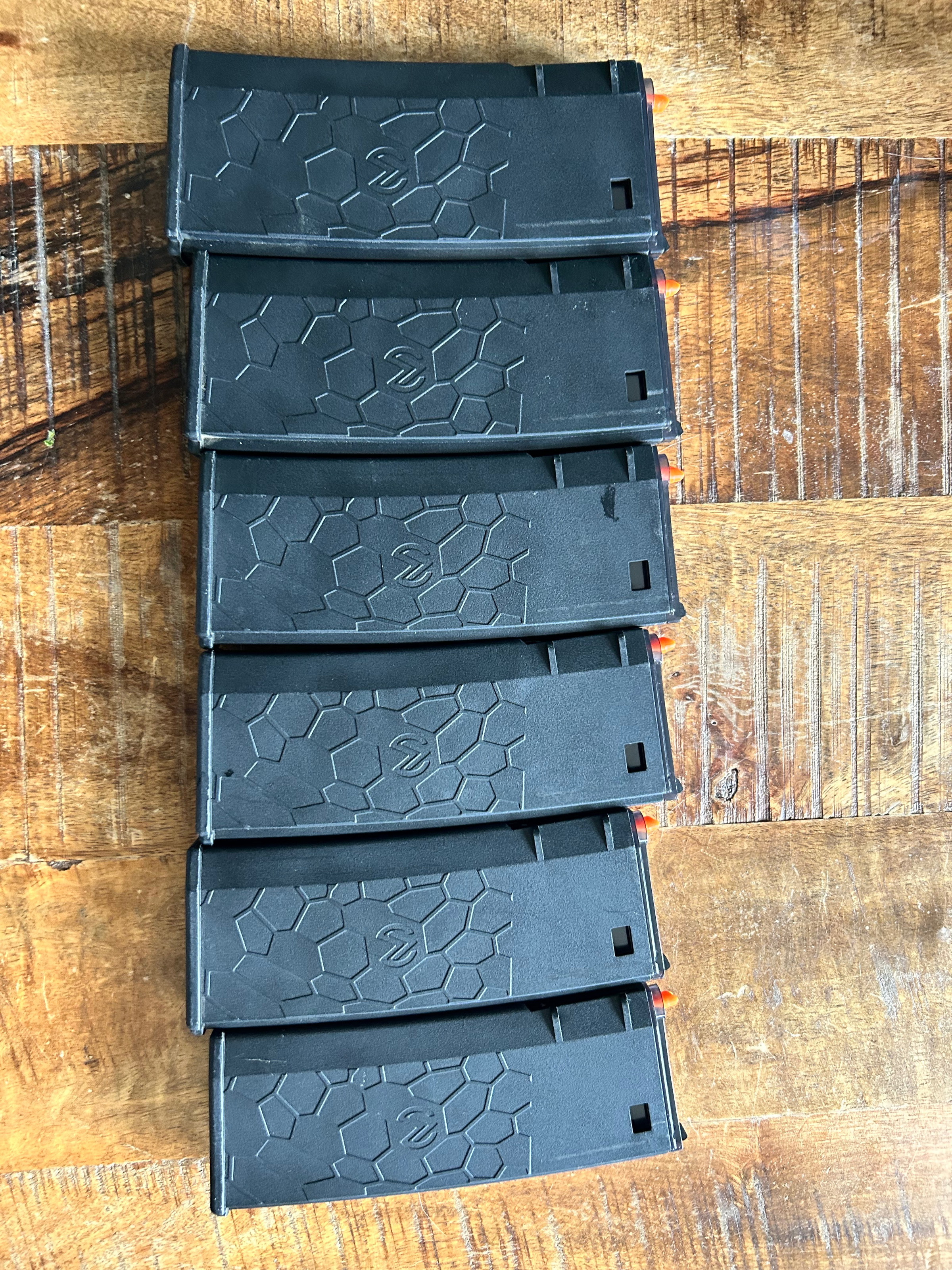 Ivm het opruimen van mijn airsoft spullen hierbij 6 magazijnen van Wolverine voor de MTW. Nog in goede staat en de empty mag pinnen/magazijnen werken nog naar behoren.