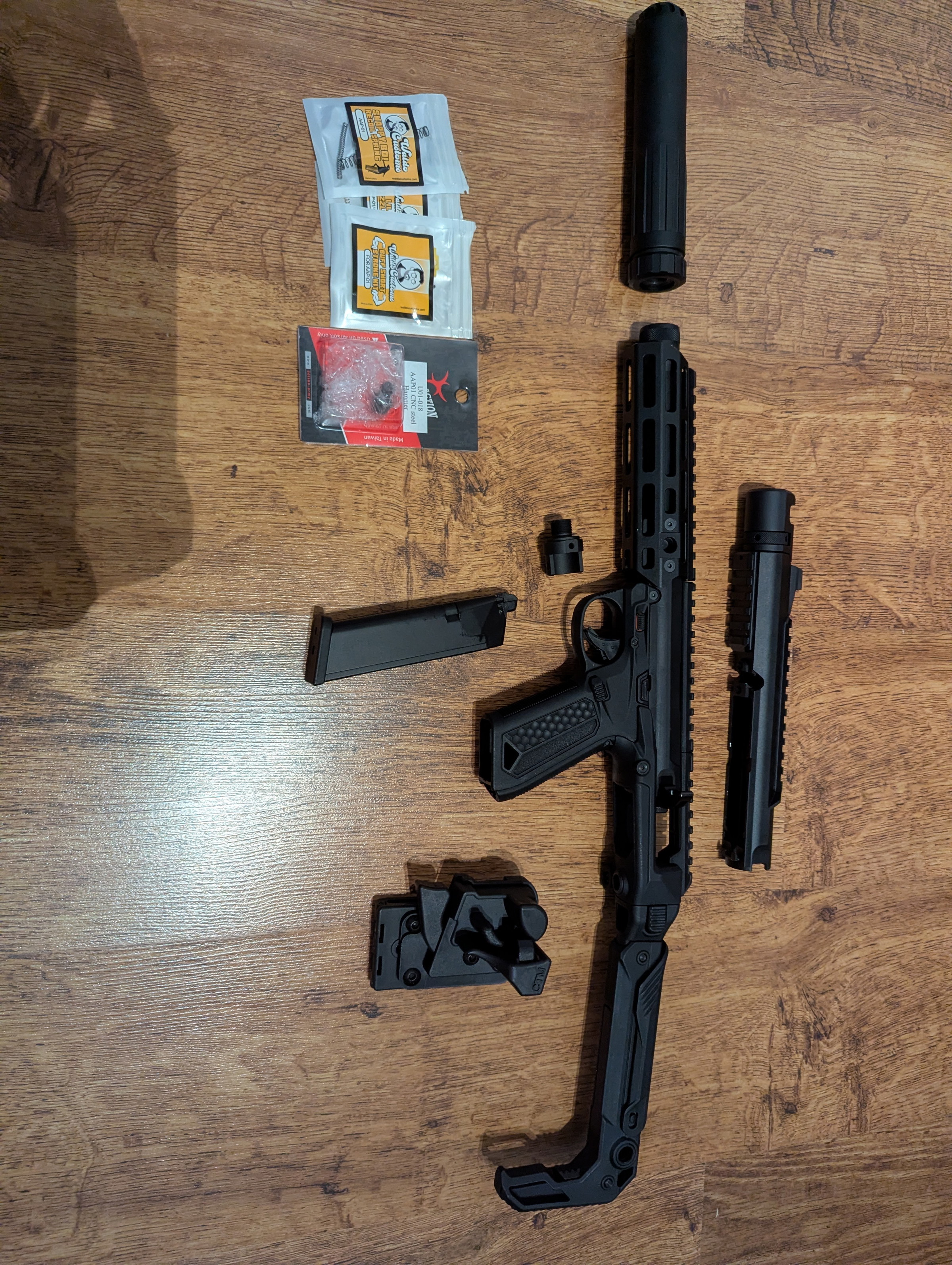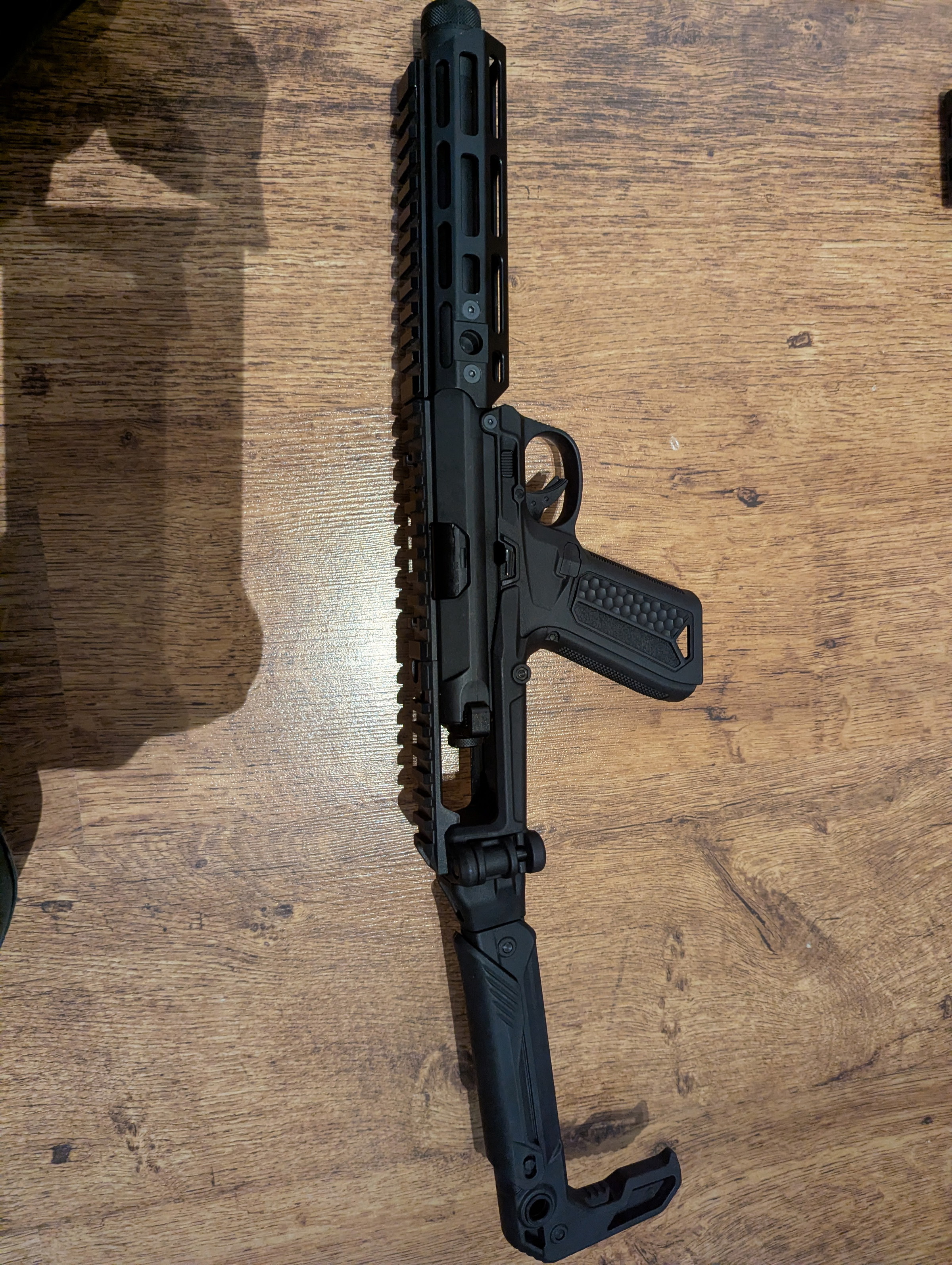 Deze heeft een carbine kit van action army zoals op de foto te zien is.