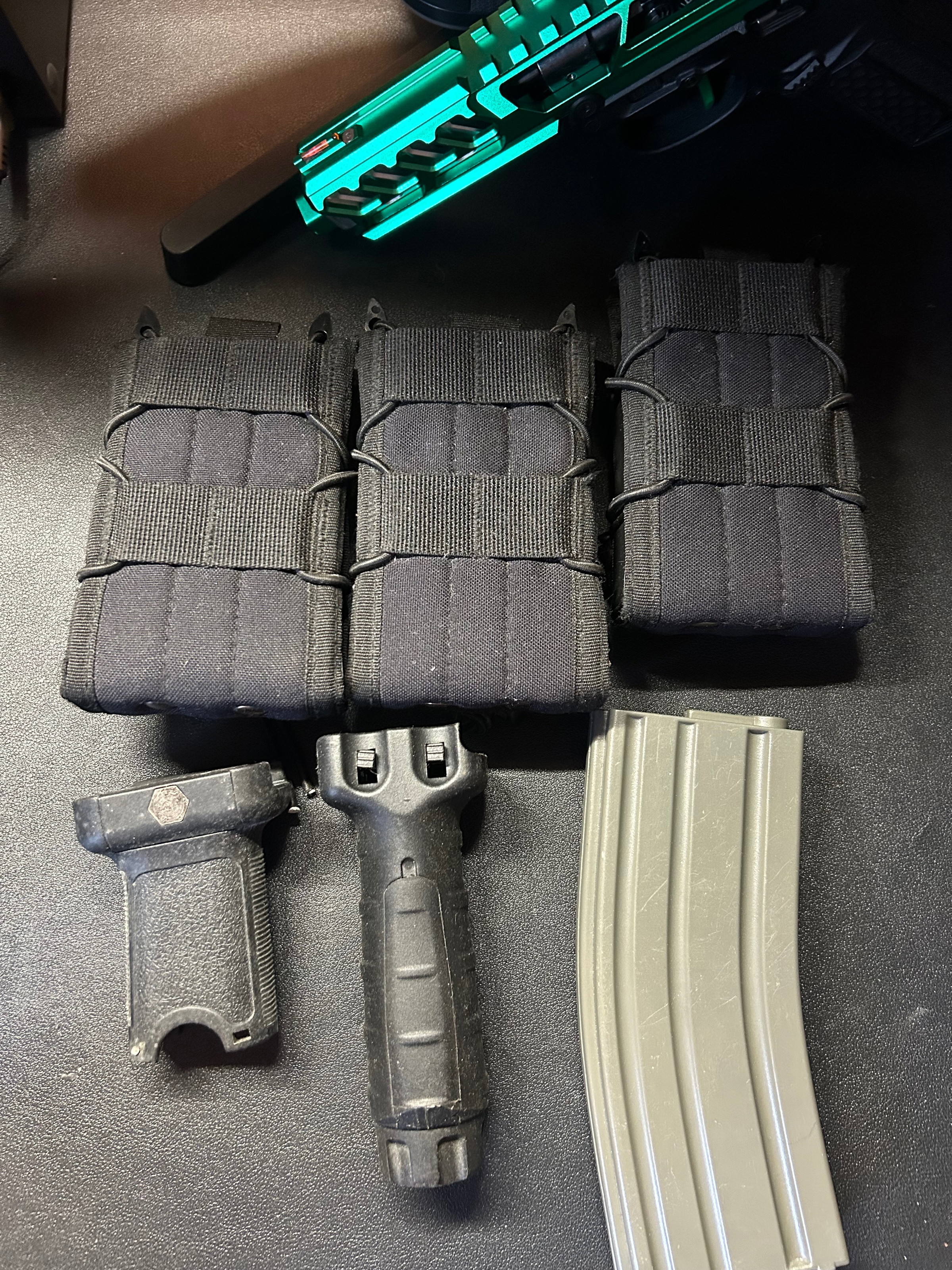 Bonjour, je vends divers accessoires tel que, porte chargeur, chargeur, poignée pour rails picatinny