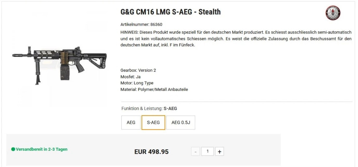 Top-reliable S AEG from G&G, the CM16 LMG