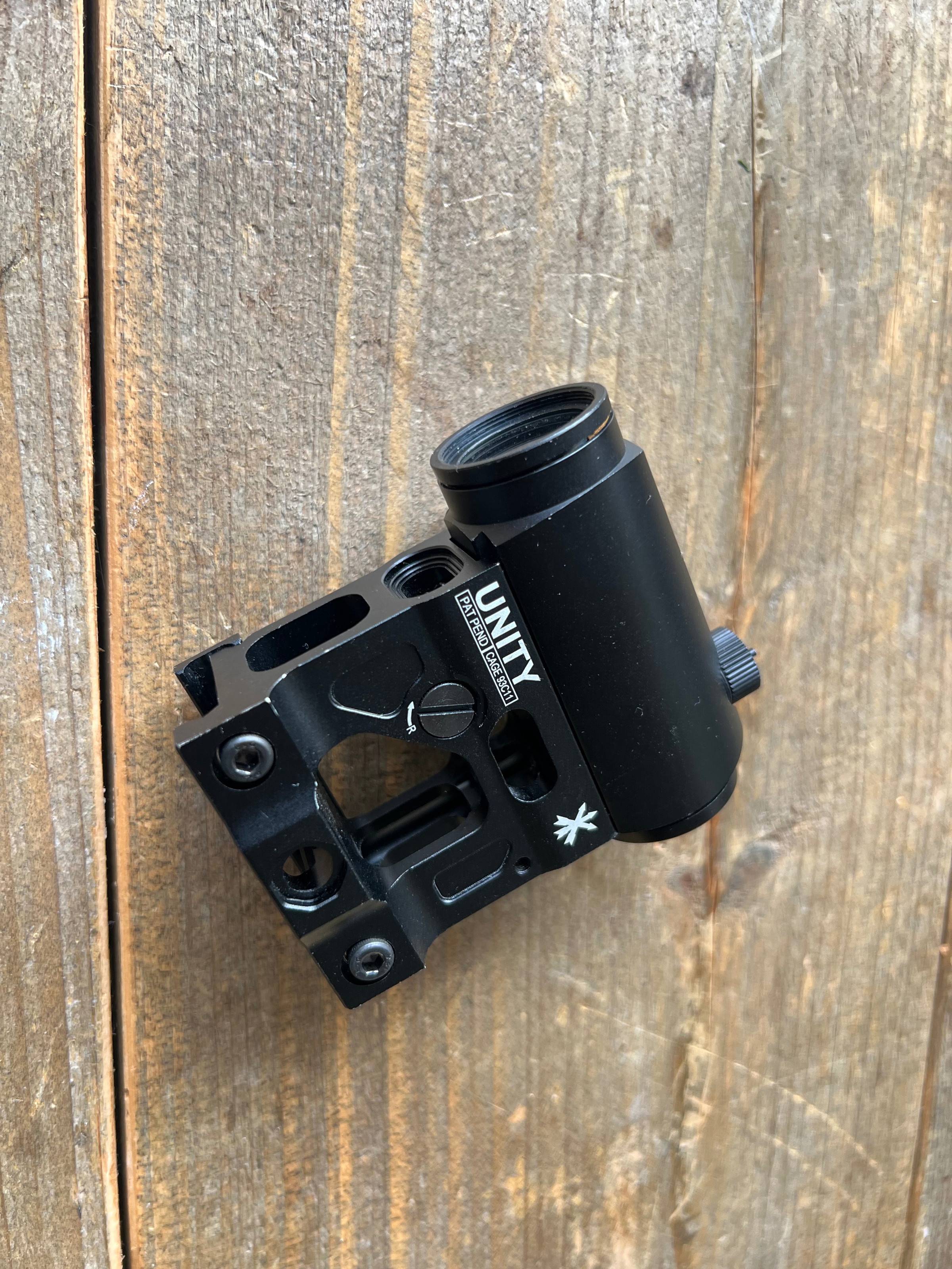 DΓ© ideale combinatie. Red dot en unity riser.Β