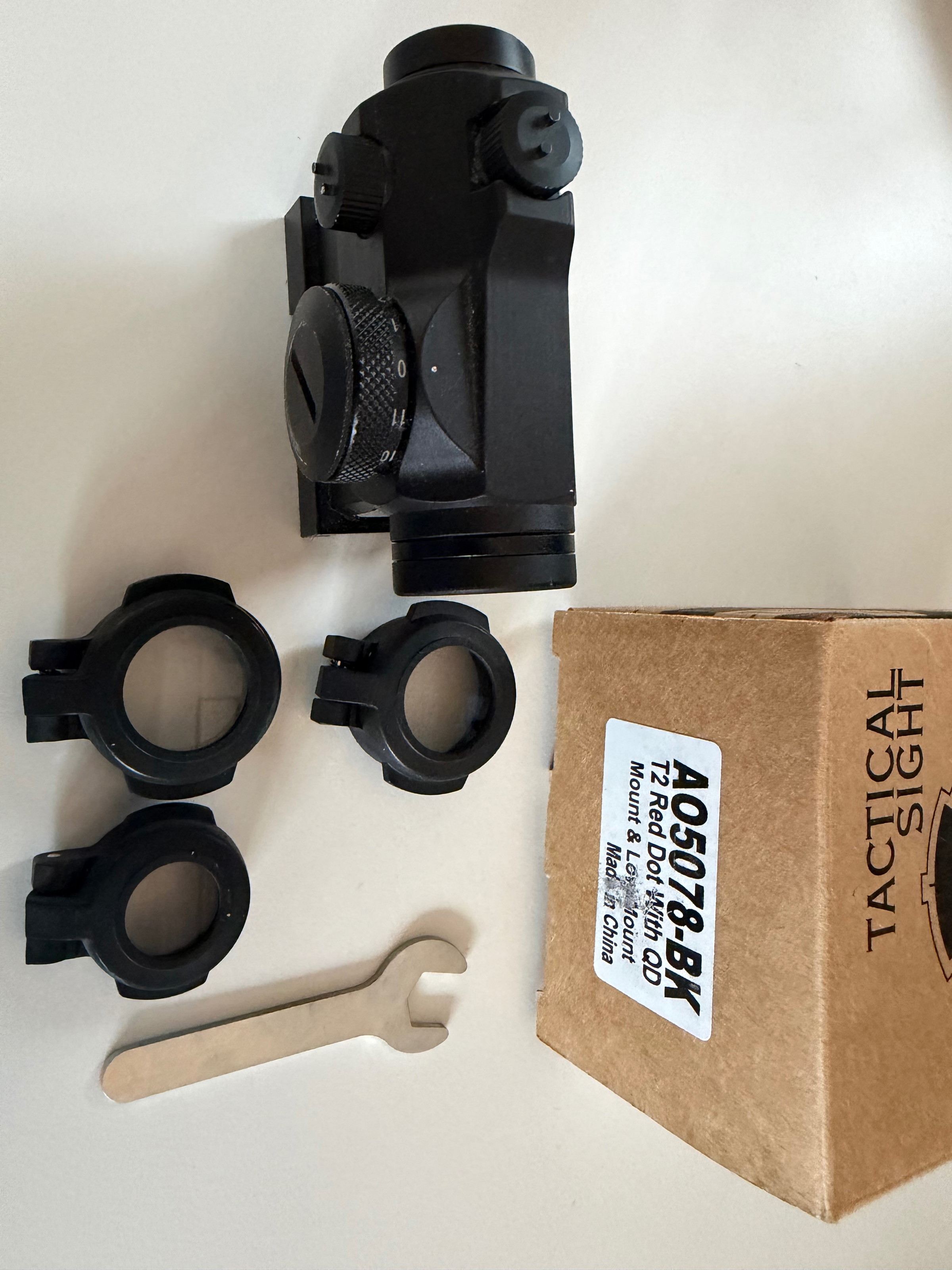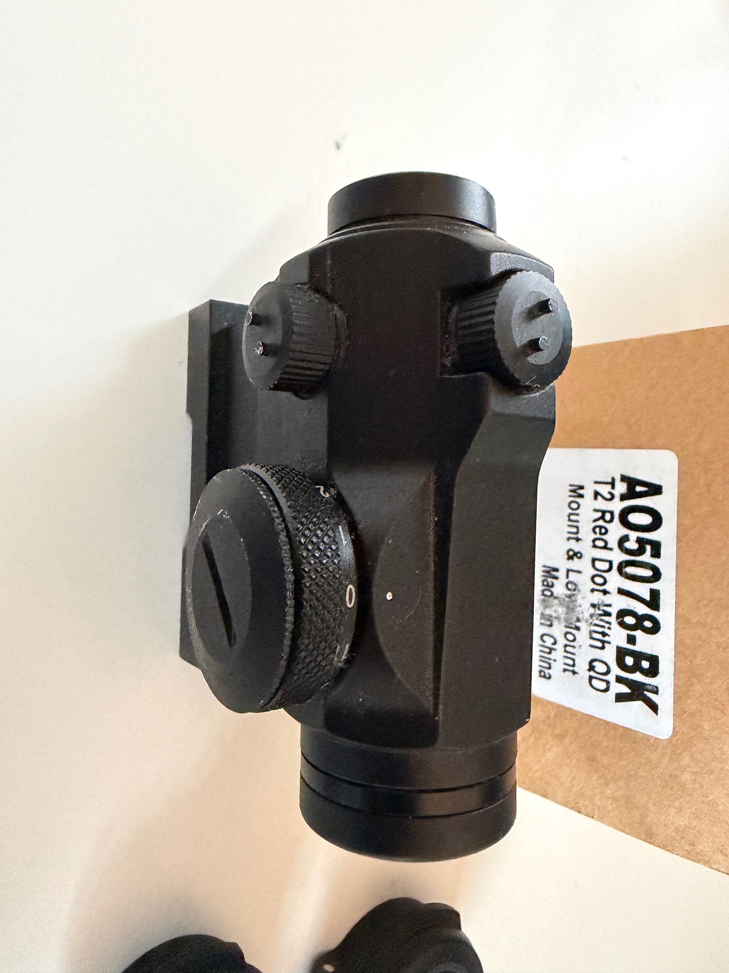 Aimo T2 met quick detacachement systeem. Red dot bevat een kill flash en extra lenskappen