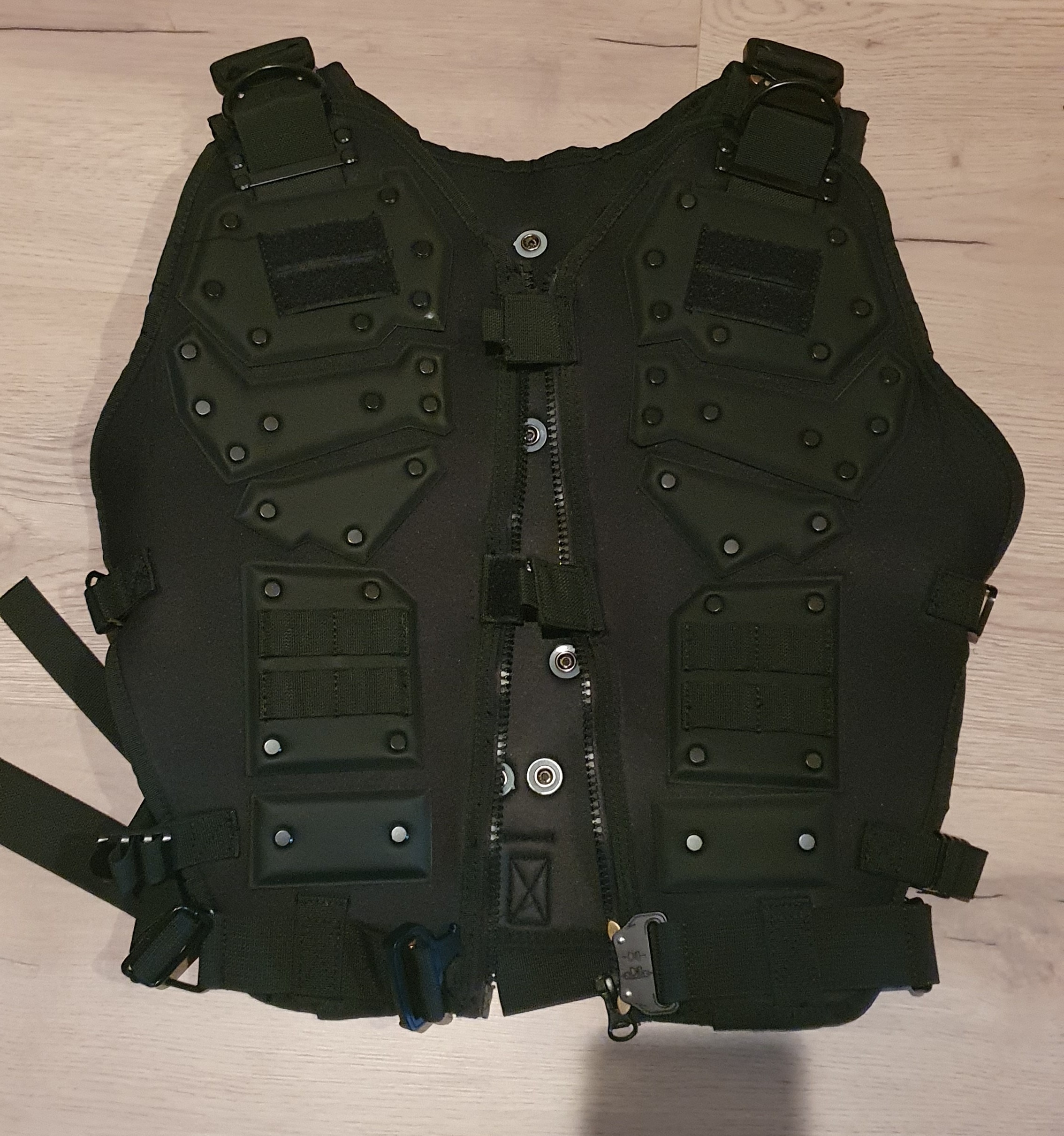 Bij deze bied ik dit vest aan. Destijds gekocht voor bescherming van mijn boven lichaam maar uitijndelijk nooit gebruikt. Kan aangepast worden om meerdere torso maten aan te kunnen.