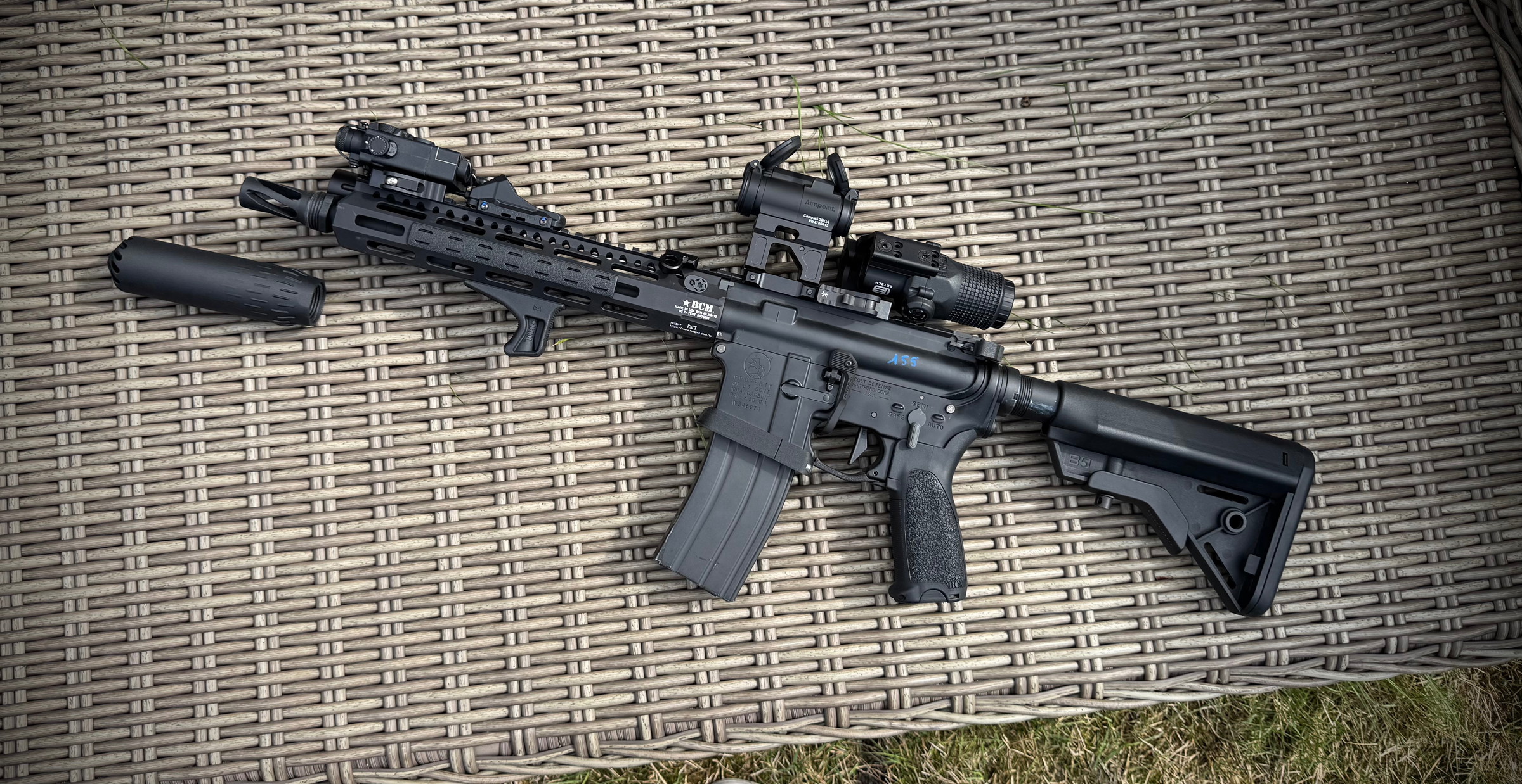 Het is dus een replica van de befaamde BCM MCMR rail gemaakt door AngryGun,
