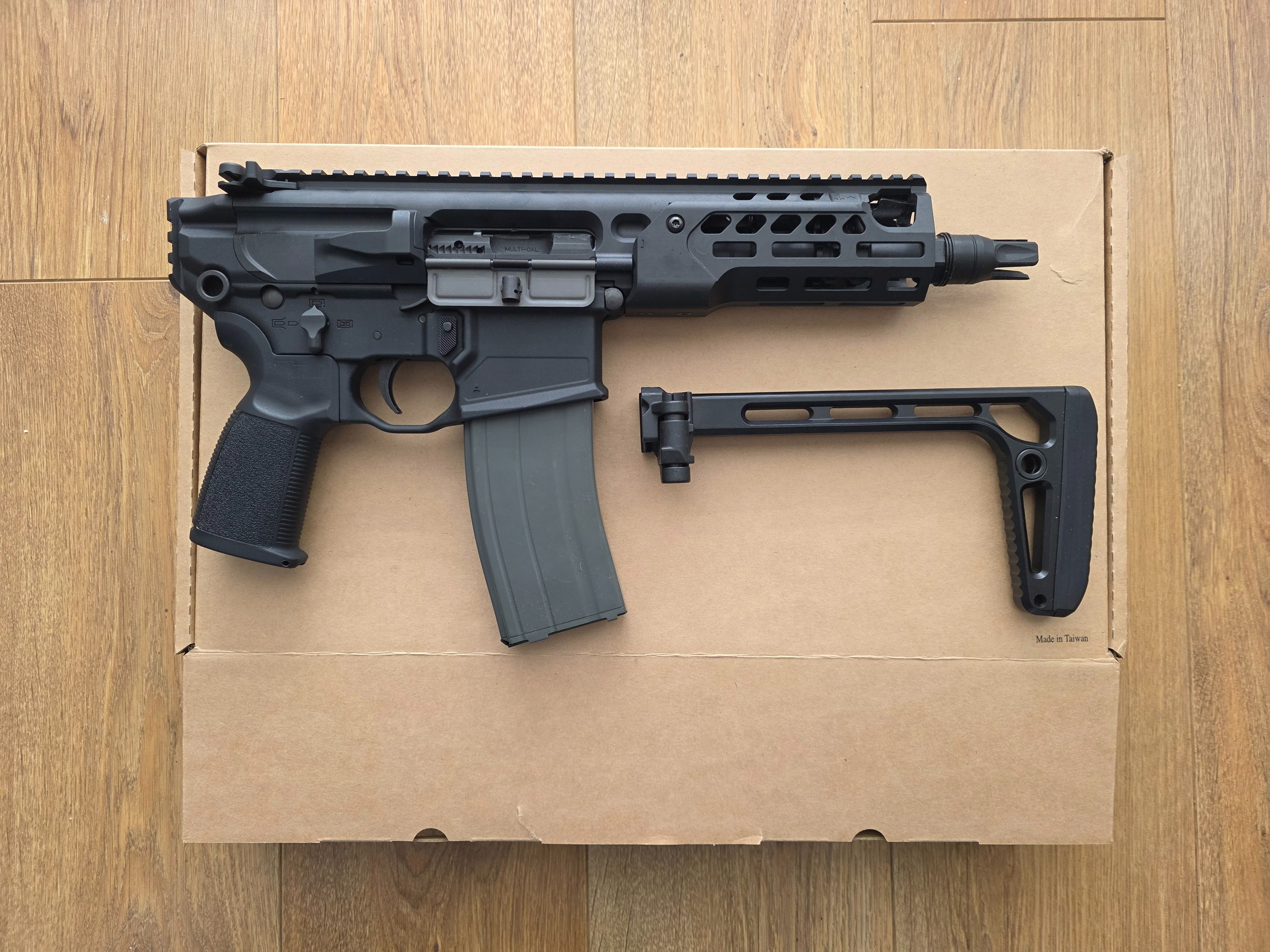 Is gebruikt voor foto's en niet mee gespeeld. Geen krassen of wear op de externals. Is geupgrade met een NPAS nozzle, omdat ik die nog had liggen. Komt met de laatste generatie stanag van VFC (De V4 met geupdate mag catch).