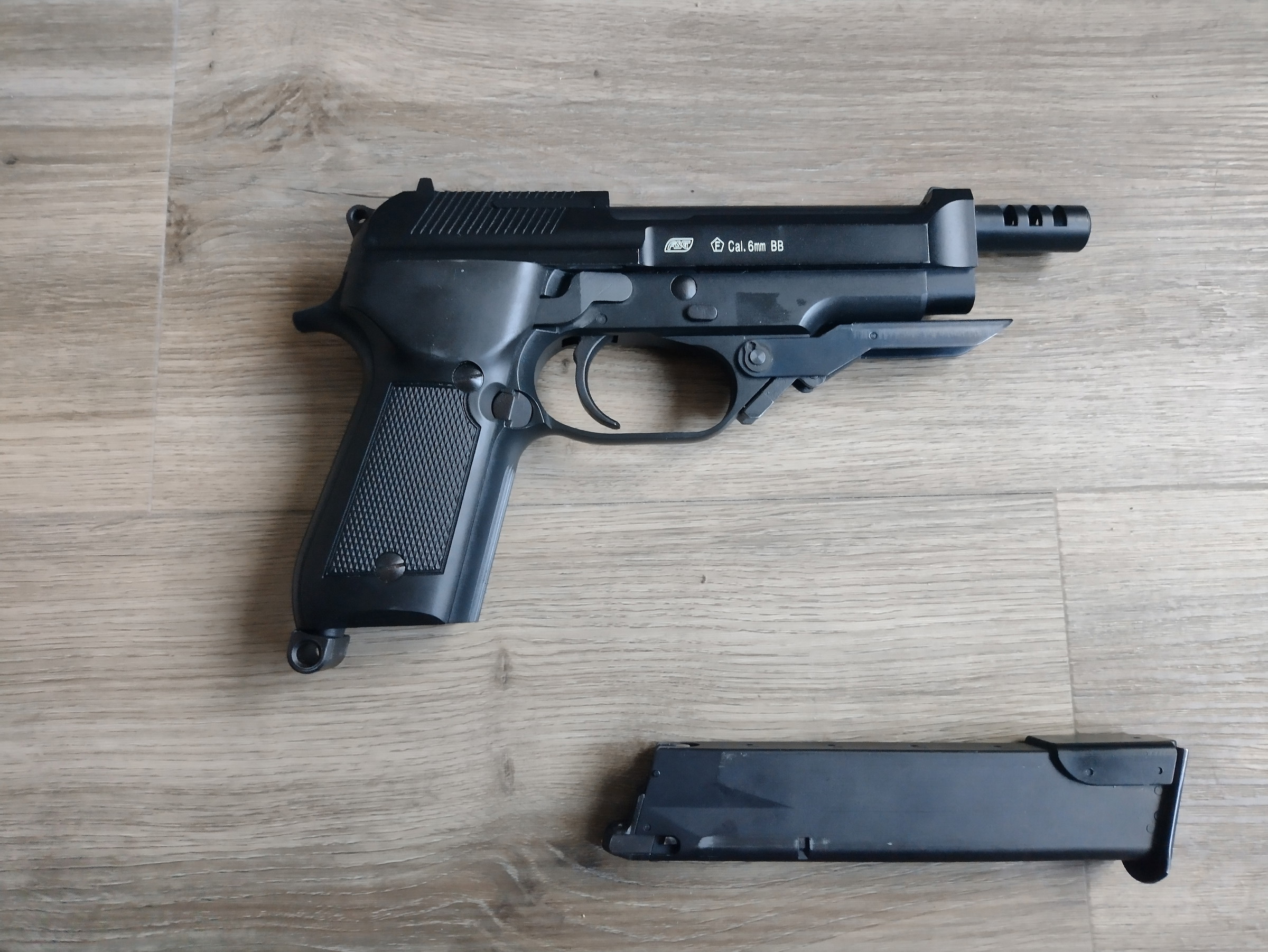 Enkele keer indoors gebruikt. Mooie replica welke semi, full auto en een 3-shot burst modus heeft.