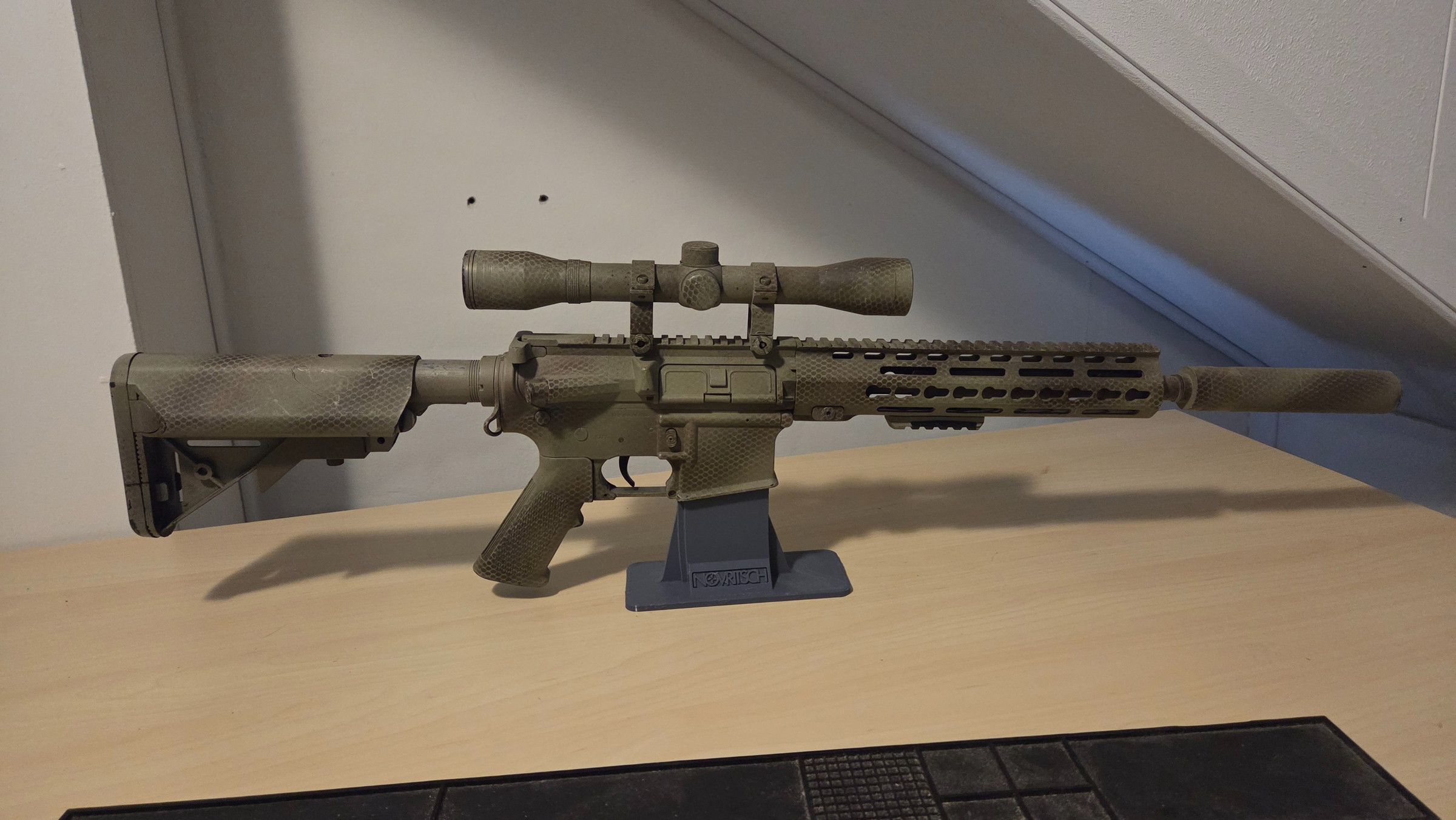Voor het maken van de advertentie foutloos 3 mid caps mee weg geschoten. Er zit een X-ASR mosfet met dean aansluitin op. Komt zonder magazijnen maar wel met de scope.