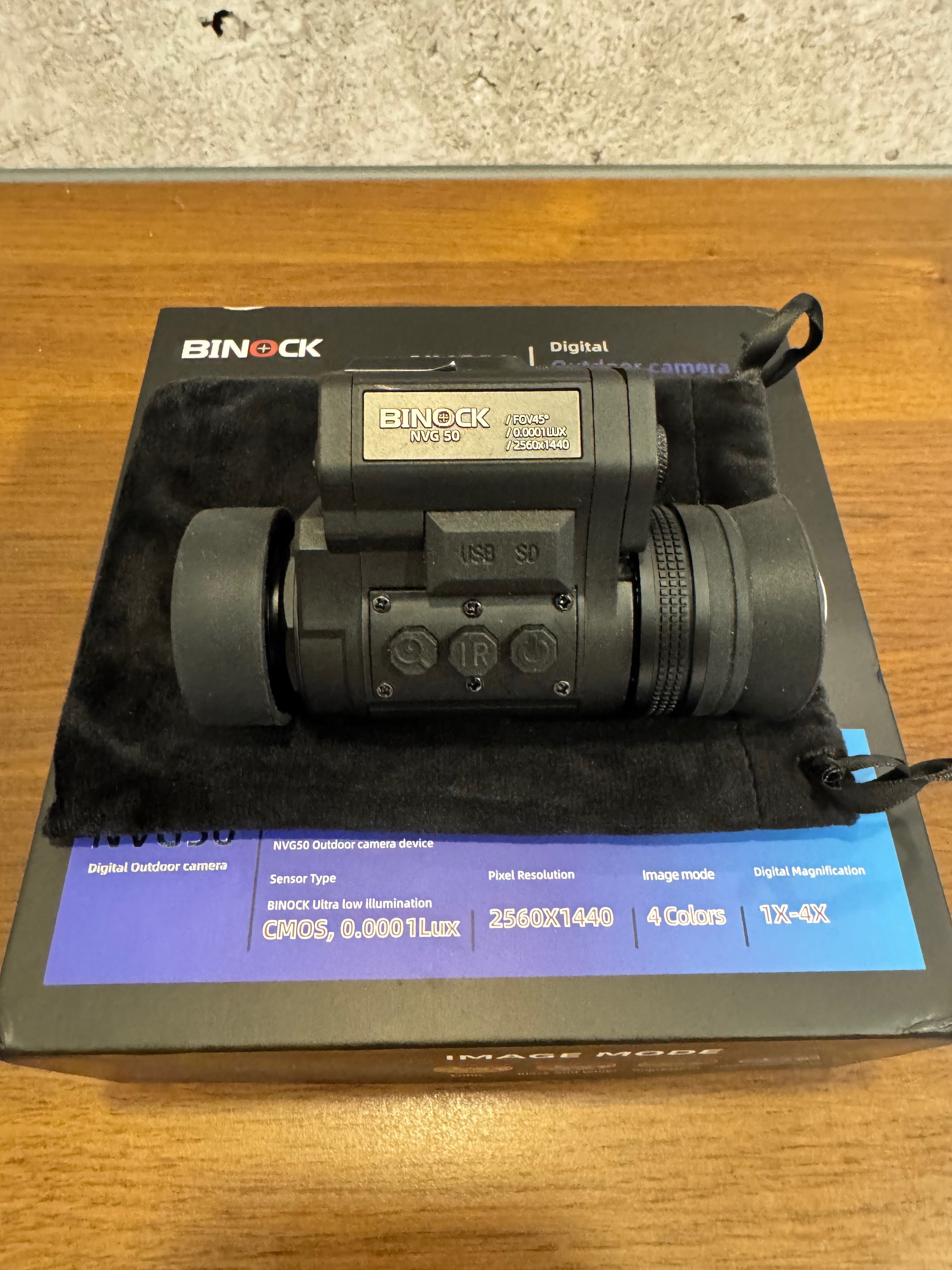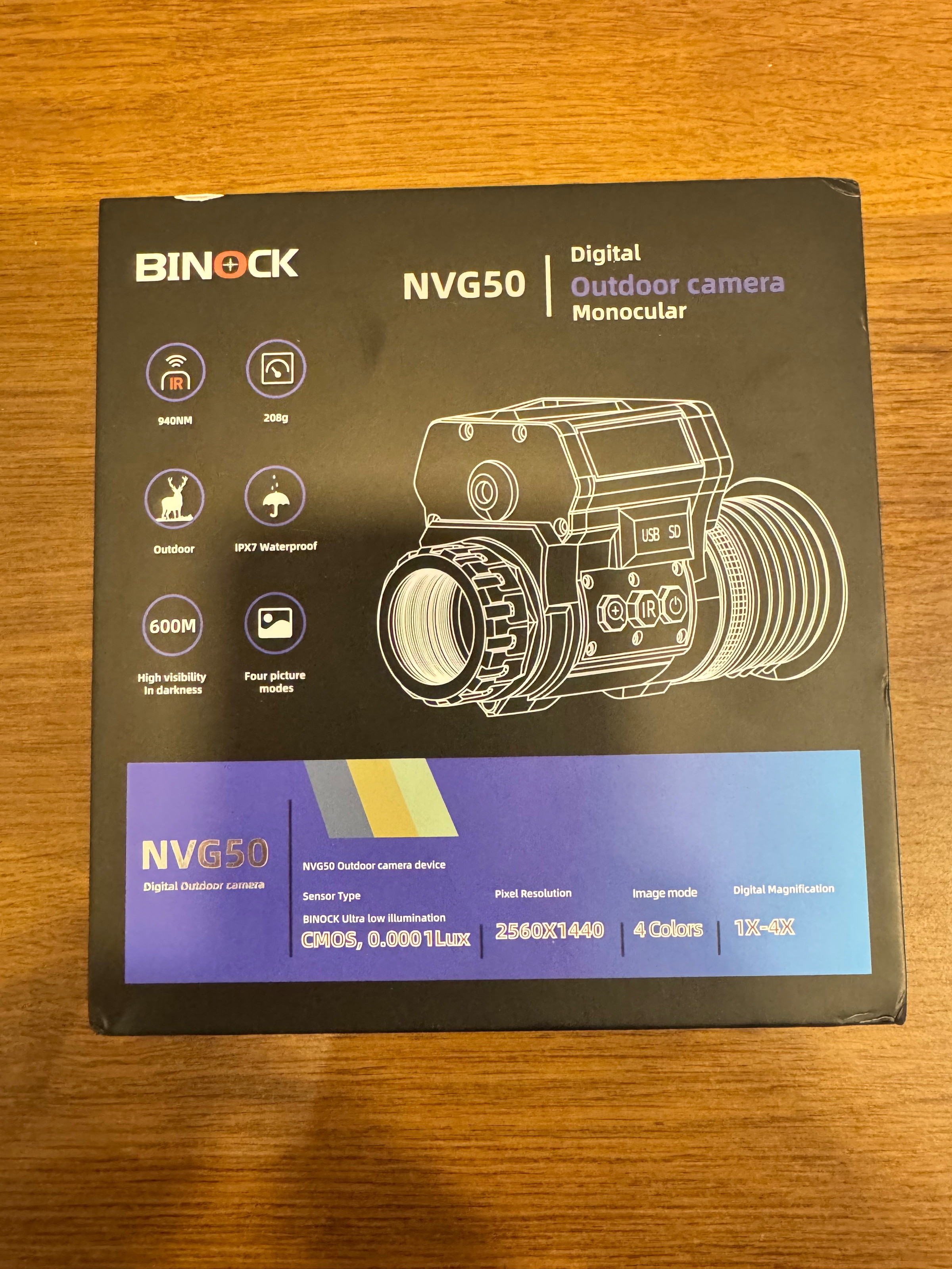 NVG50 is the latest generation of night vision products in 2024 from BINOCK with ultra-clear resolution of 2560 x 1440 pixels and clear images. the weight of product is only 192g, and size only 87x65x20mm.