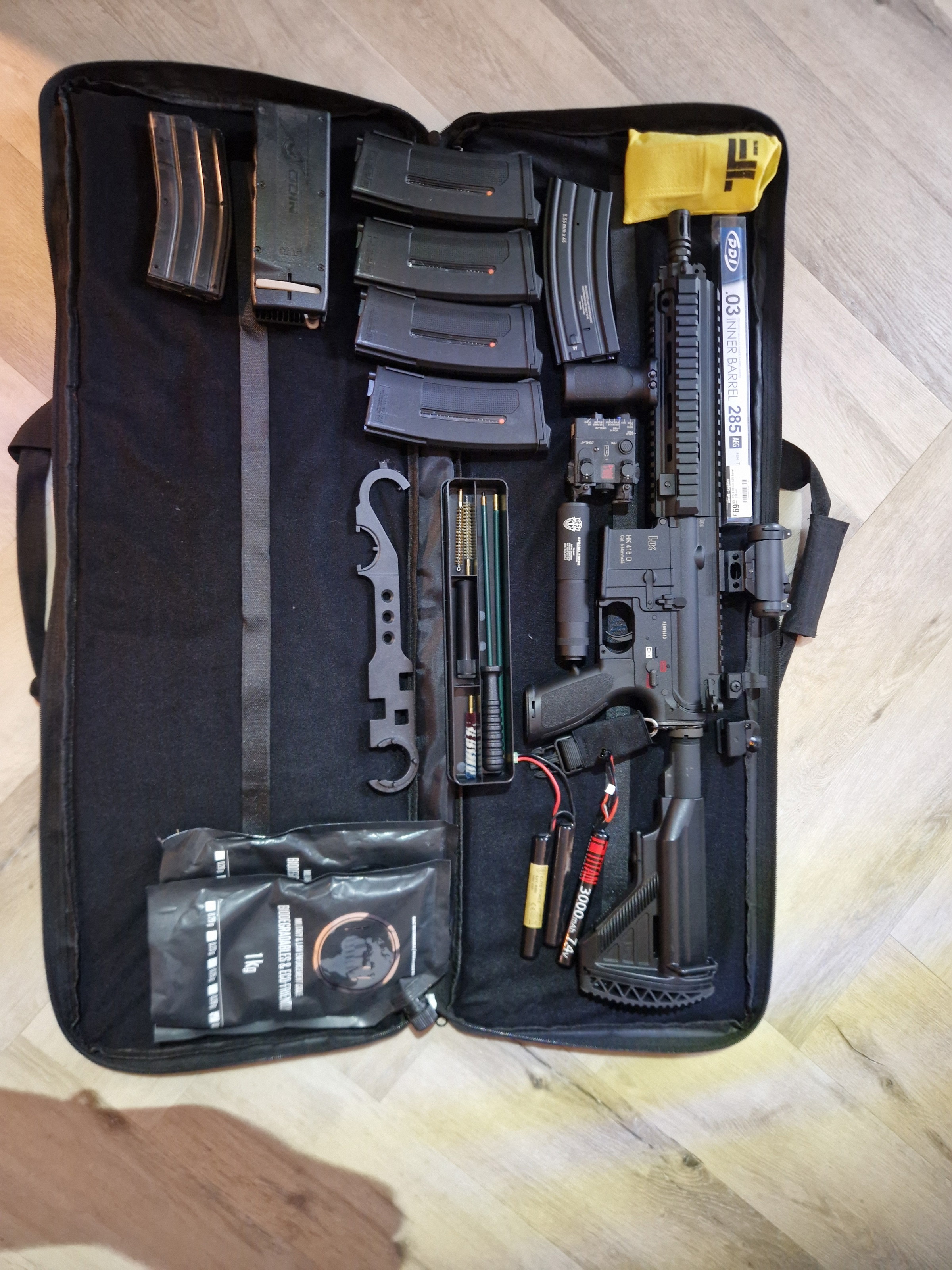 Na ongeveer een jaar actief te zijn geweest in de airsoft en ongeveer 4 a 5 skirms te hebben gespeeld, heb ik besloten te stoppen vanwege tijdgebrek. Daarom bied ik hierbij mijn volledige uitrusting aan. Alles is goed onderhouden, compleet en direct speelklaar. Ideaal voor de beginnende of gevorderde speler die op zoek is naar een betrouwbare en kwalitatieve setup.