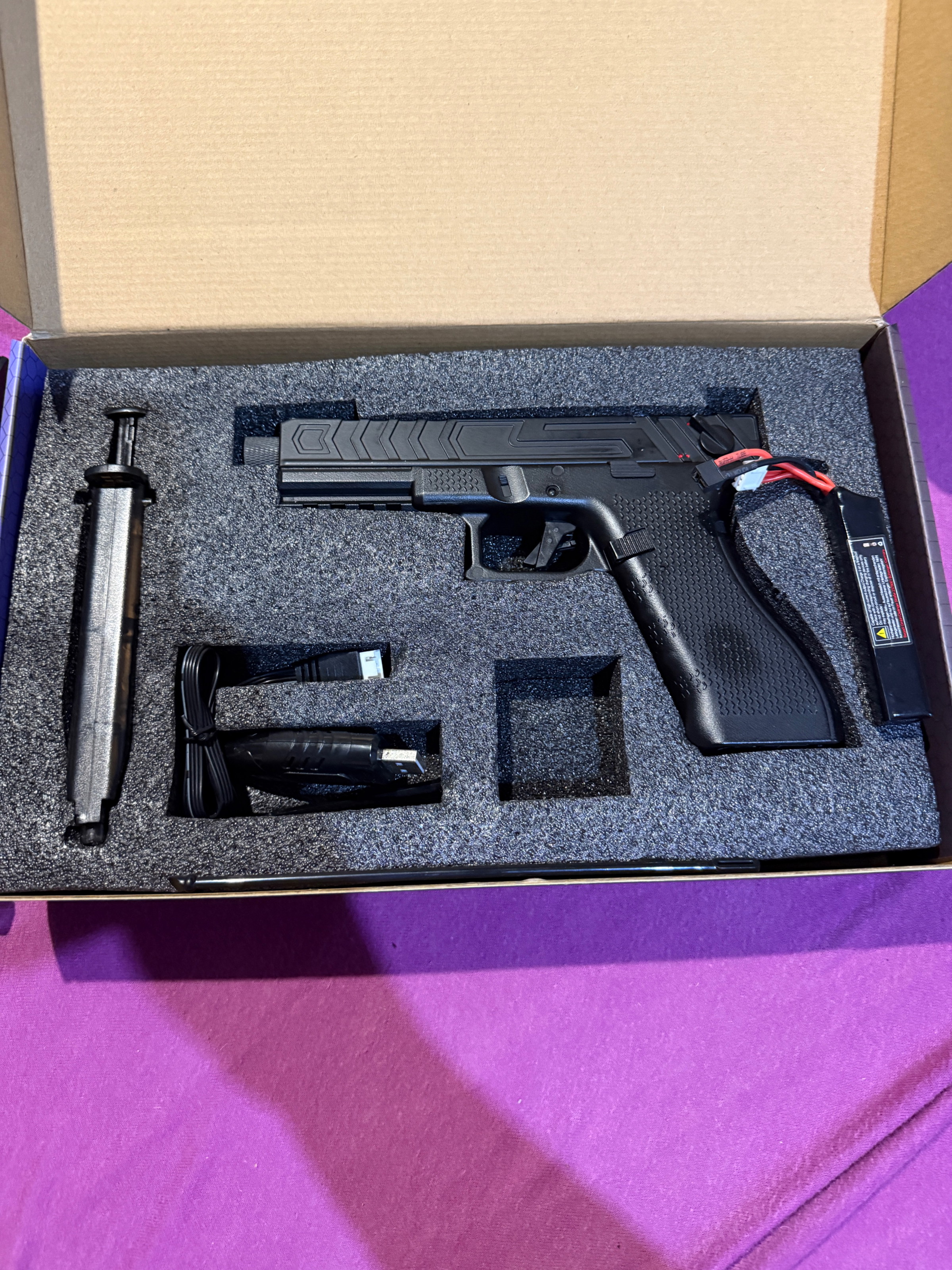 Da ich das Hobby aufgegeben habe die waffe funktioniert tadellos hat unter 0,5 Joule das heißt sie schießt auch voll Auto
