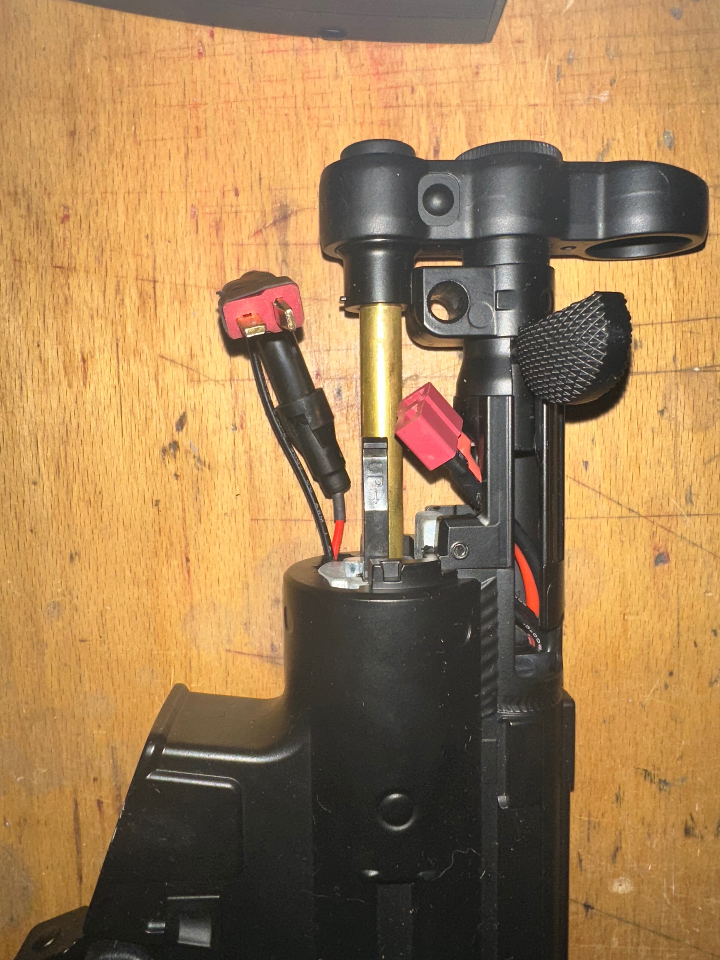 De lipo zit redelijk vast in de replica, die ga je er echt nooit meer uit krijgen maar je kan wel opladen als hij er nog in zit, kabeltjes zijn daar lang genoeg voor. Wel goed opletten dan…