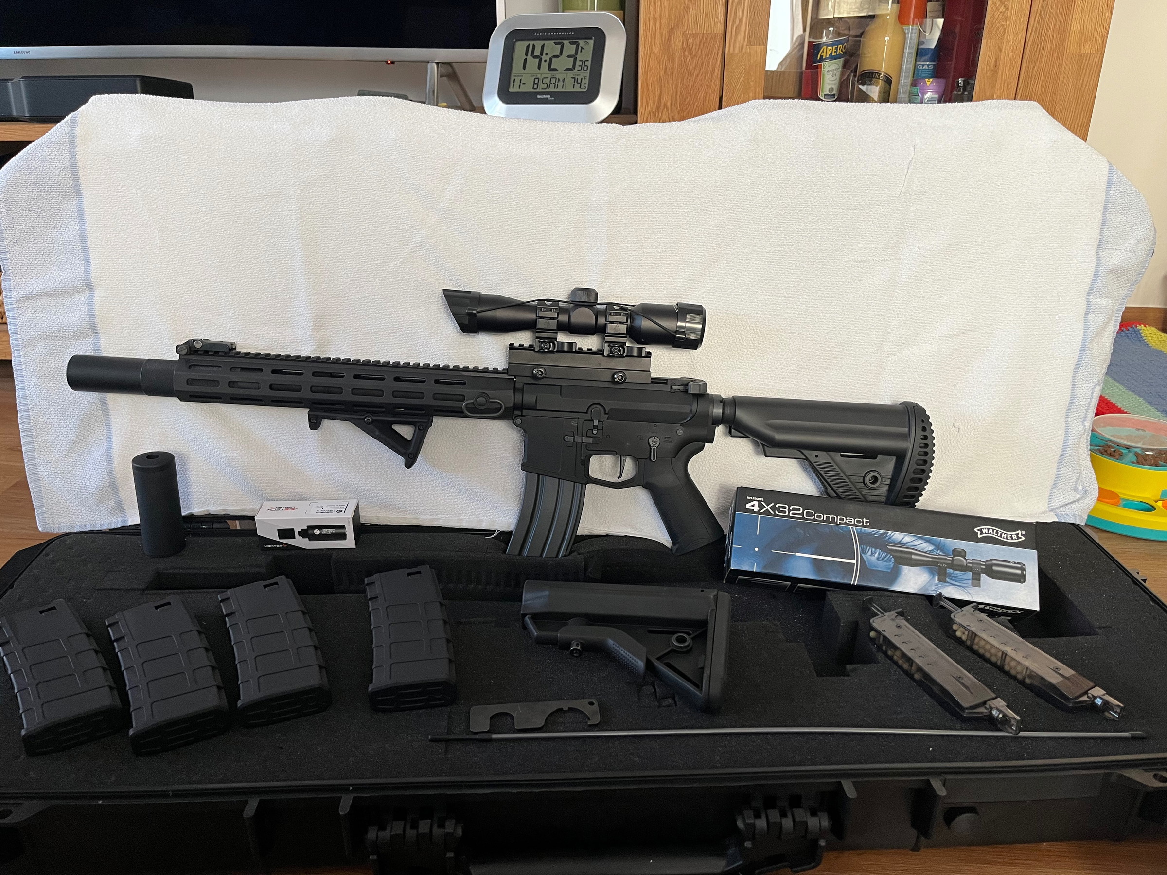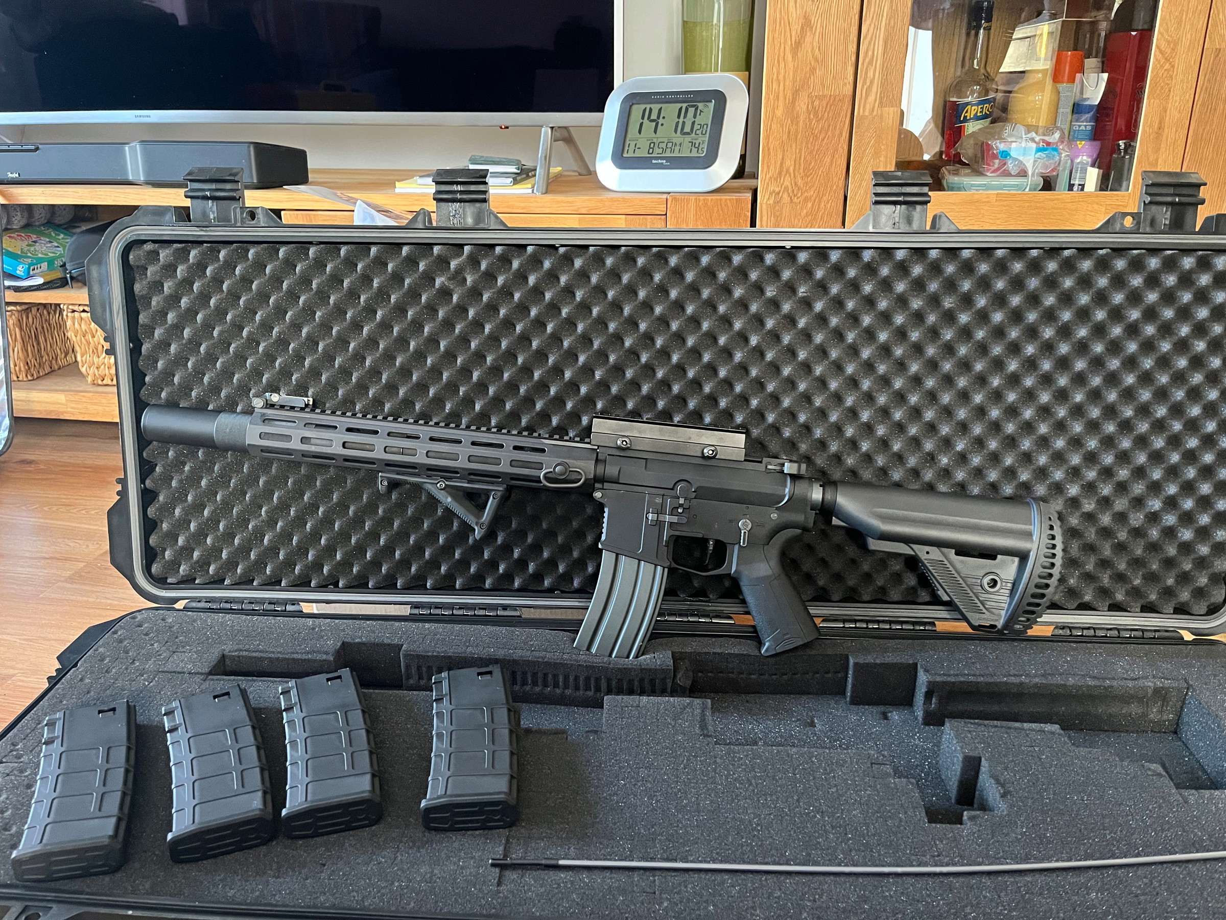 E&L  M4  getuned Titan Gate und vieles mehr ! Walter Zielfernrohr, Schaldämpfer ,Koffer , 4 Mid Magazine in Koffer ,Akku , Ladegerät , war ein Ausstellungs Stück wurde nur getuned, ! aber nur in Koffer gelagert  ,Funktion getestet 10 Schuss , nicht bespielt ,