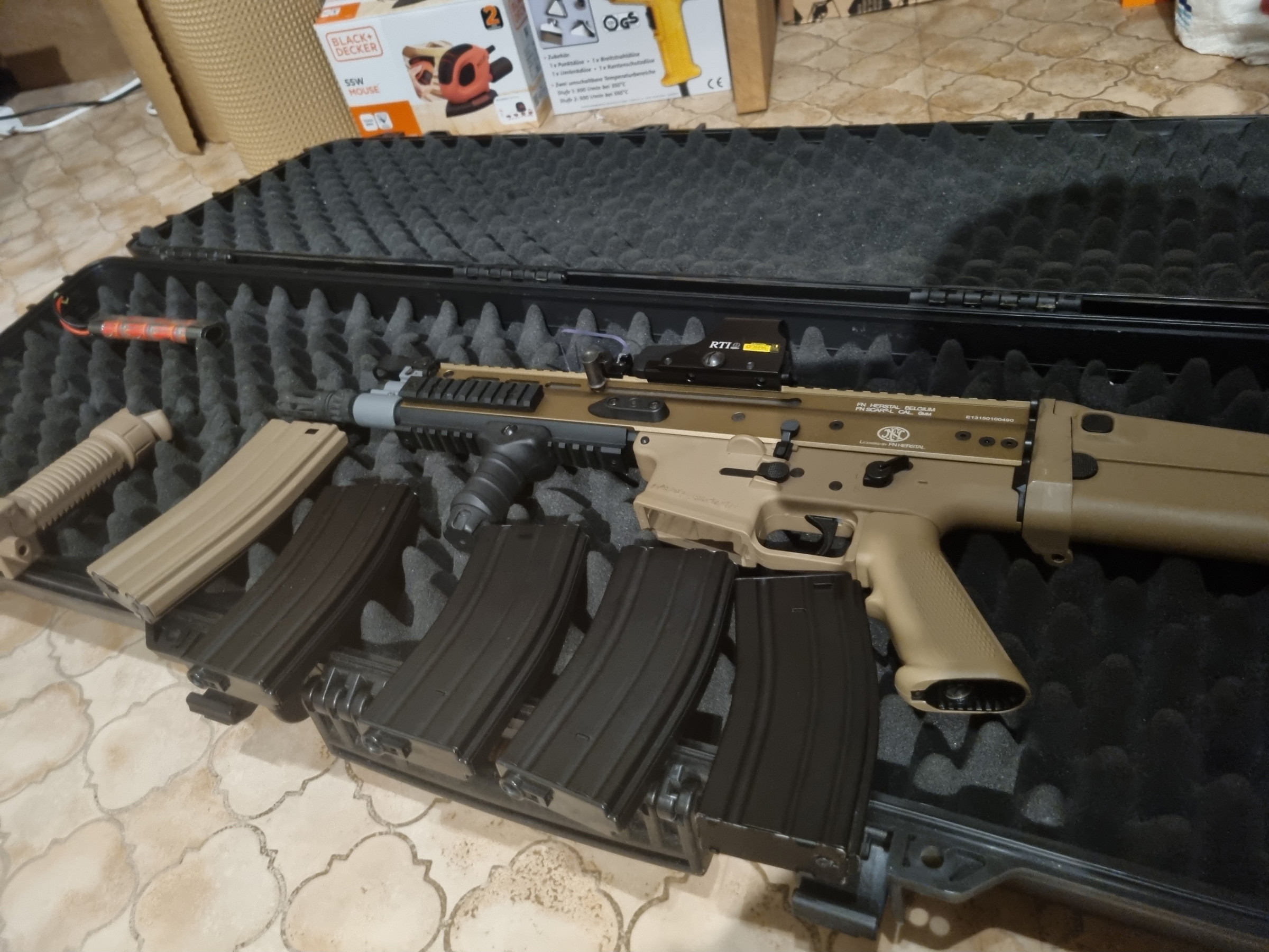 FN HERSTAL SCAR-L met attachments op, liefst volledig in set aan te kopen (ik verkoop geen losse onderdelen).