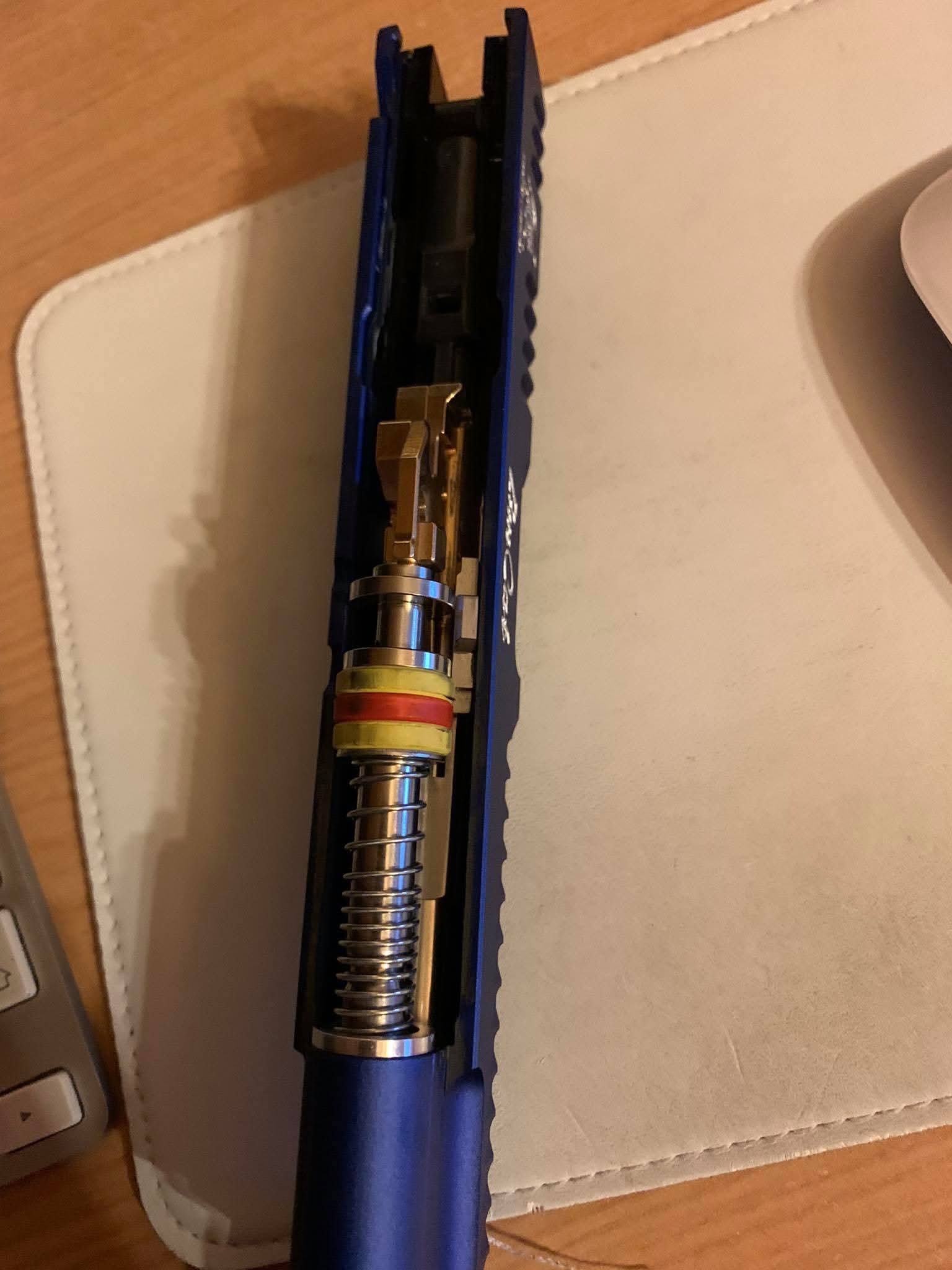 Airsoft masterpiece outer barrel, cowcow 140% veer, cow cow blowbackhousing (lightweight), cowcow fibersights, stippled grip, pdi 6.01 innerbarrel, Maple leaf bucking, Airsoft masterpiece slede, Airsoft masterpiece brass hopup
