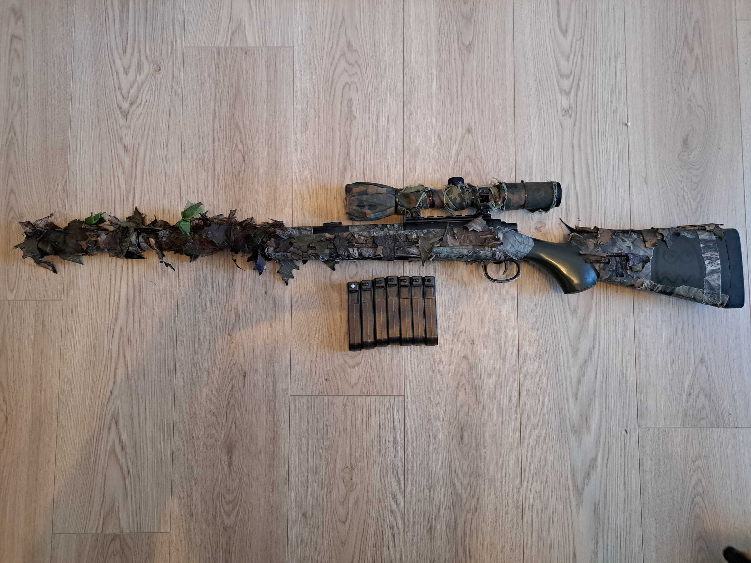 De camo is veroudert maar werkt nog zeer goed, zeker in combo met een ghillie suit (zie foto).