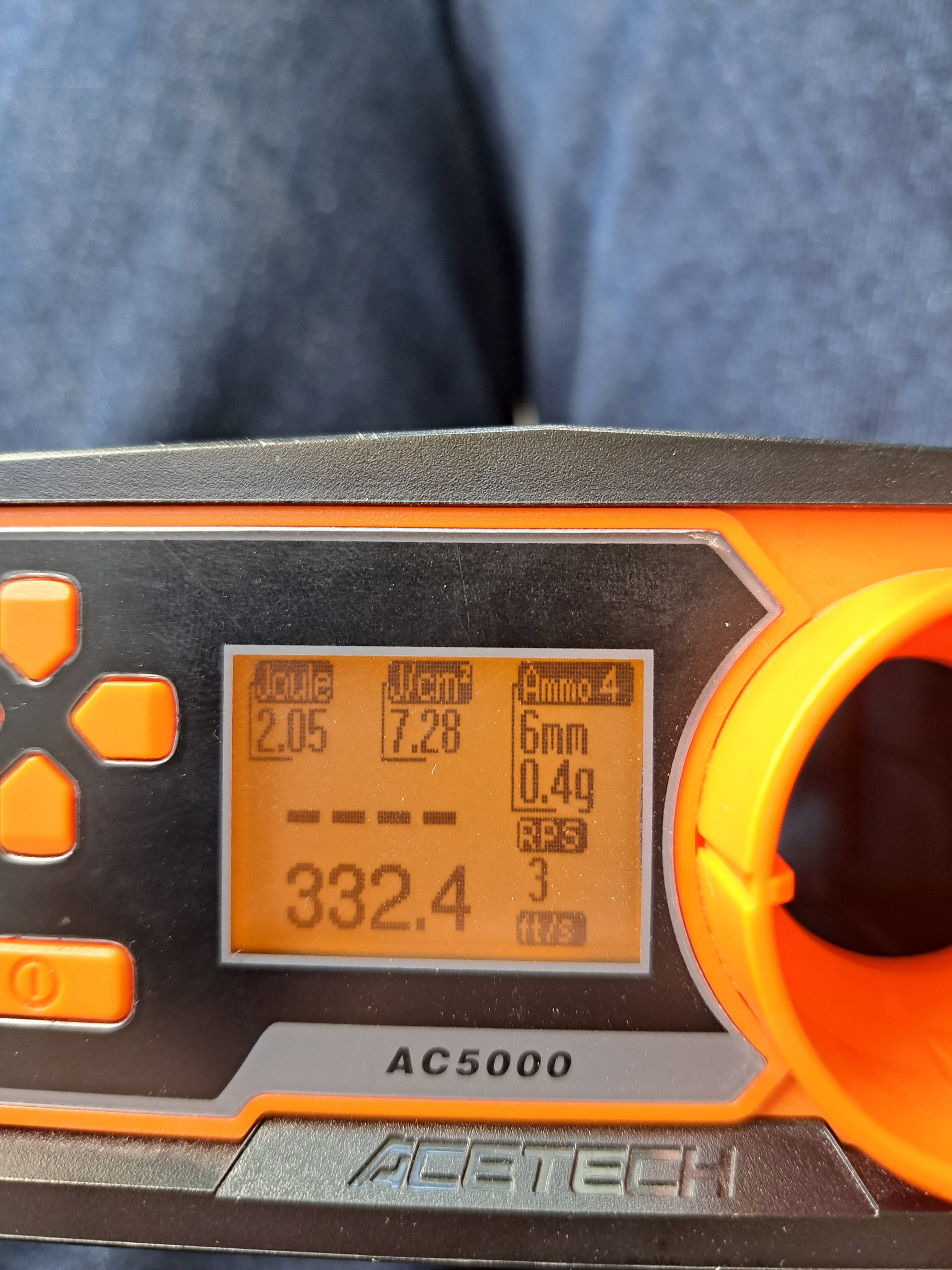 Hij schiet mooi recht en met consistente fps (zie foto's, test met 0.4).