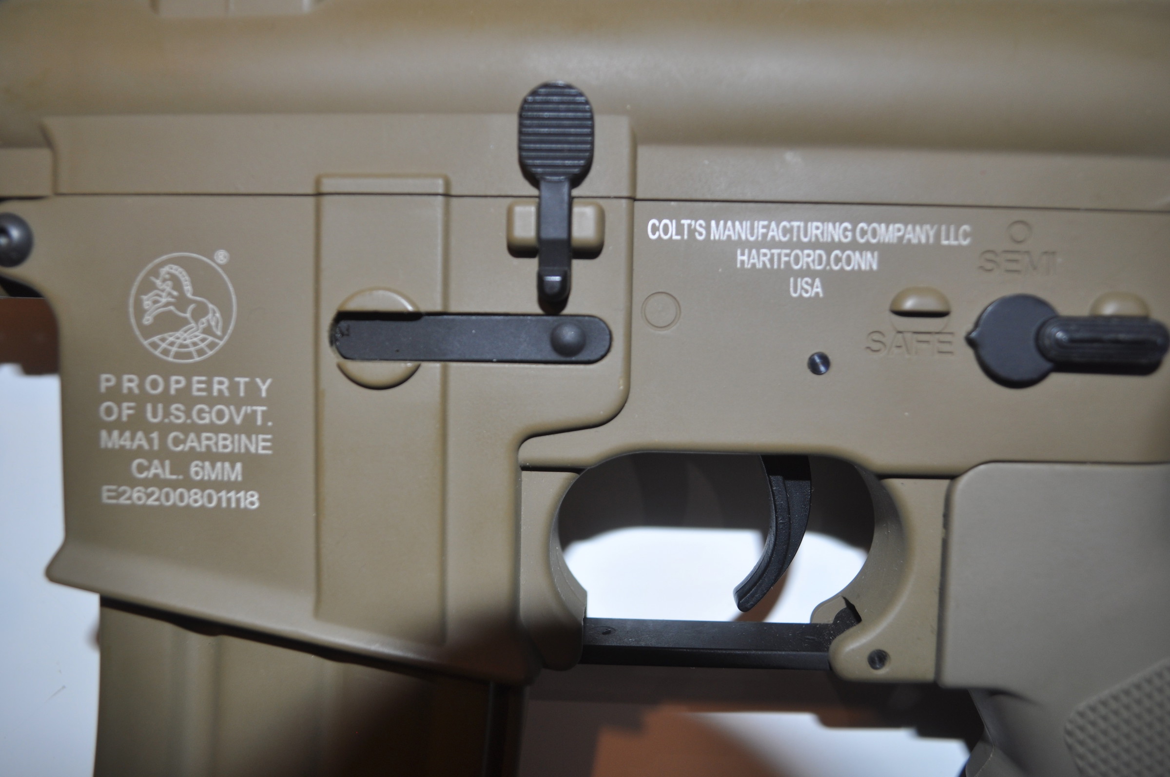 fusil M4A1 / 1 fourreau sac à dos/1 laser rouge/1 silencieux/ 1 lunette 3-9x32mm/+ 2 chargeurs plastique/ 1 paire de gants/ 1 masque 1 cagoule / 1 jeu de batterie ensemble près à jouer état neuf, servi 2 fois marque / COLT'S MANUFACTURING COMPANY LLC HARTFORD.CONN USA