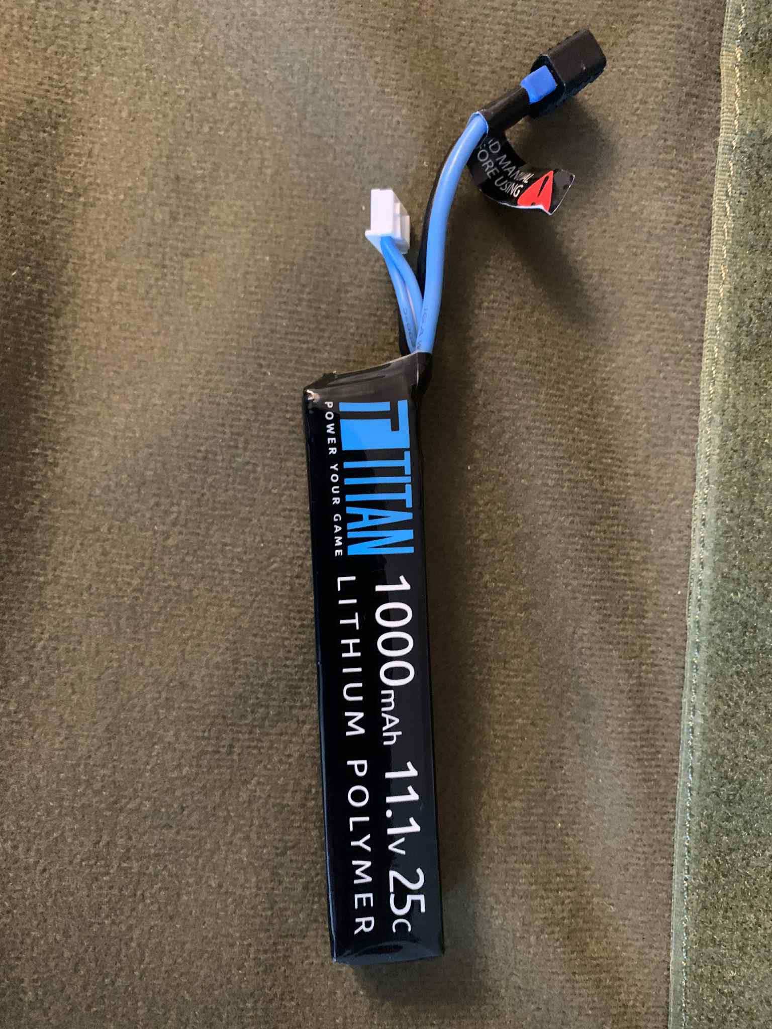 Hierbij komt ook een batterij van Titan 11.1v 1000mah, 6 m4 magazijnen van Krytac en een groene tas.