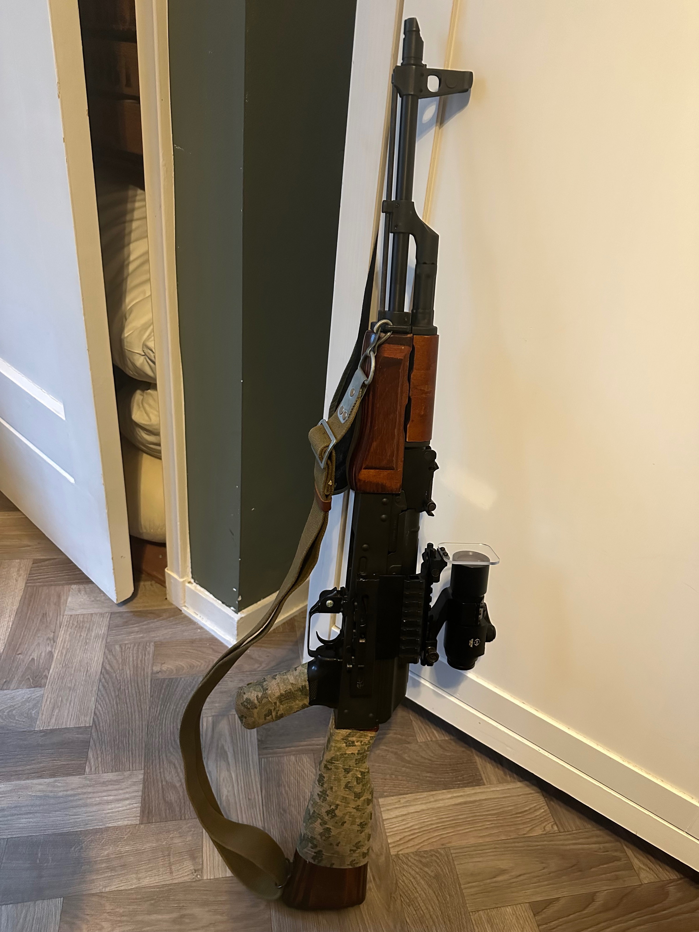 Mooie AK variant met echt hout. Batterij zat oorspronkelijk in de handguard, bedrading in omgelegd en zit nu een 11,1v titan block in de stock (inclusief).