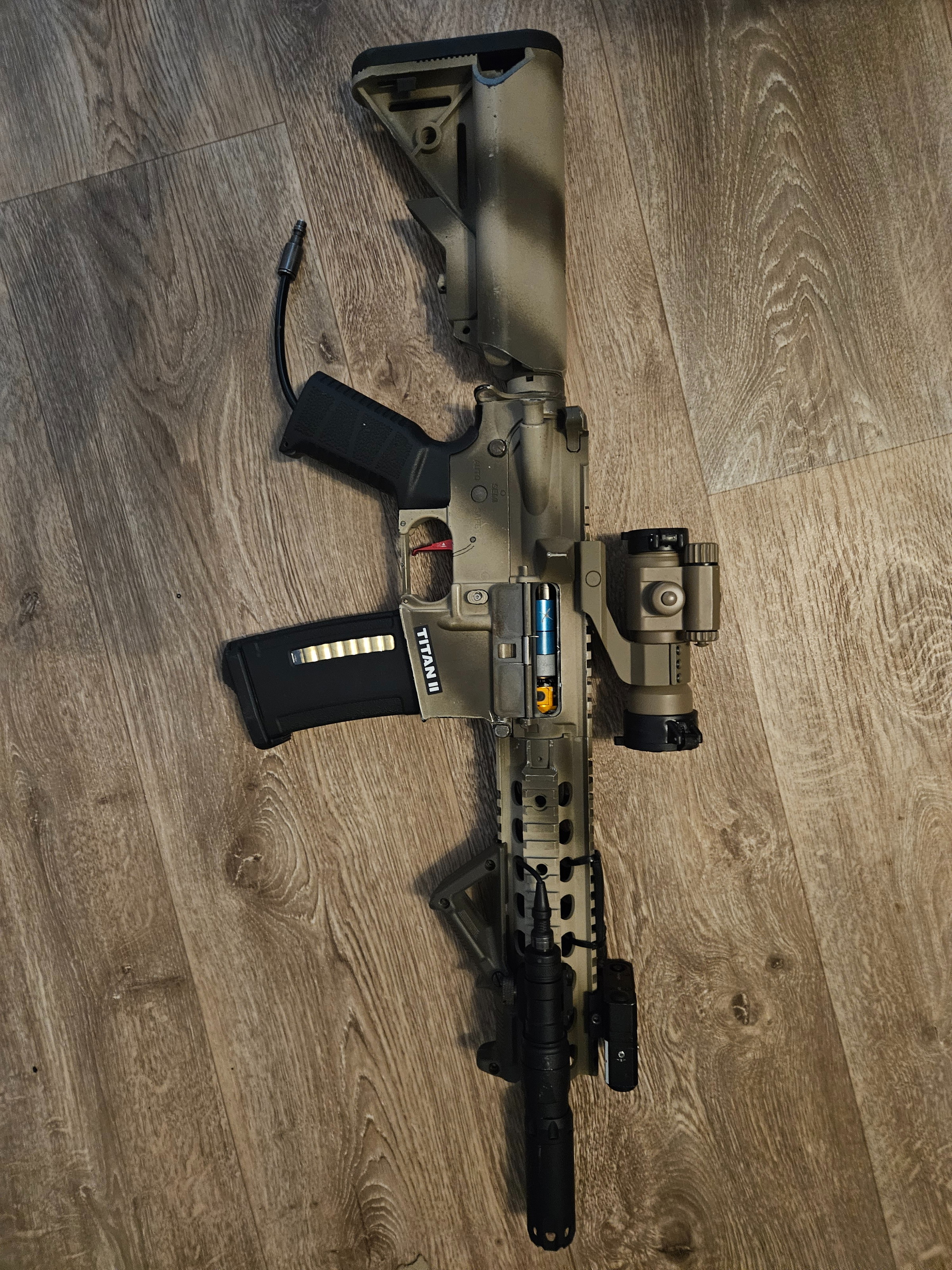 Deze fantastisch mooie m4 is niks meer origineel aan van de custom paint job tot de gate hpa unit dit is echt een monster en met deze m4 ga je elke skirm pakken hij heeft me nog nooit in de steek gelaten !!