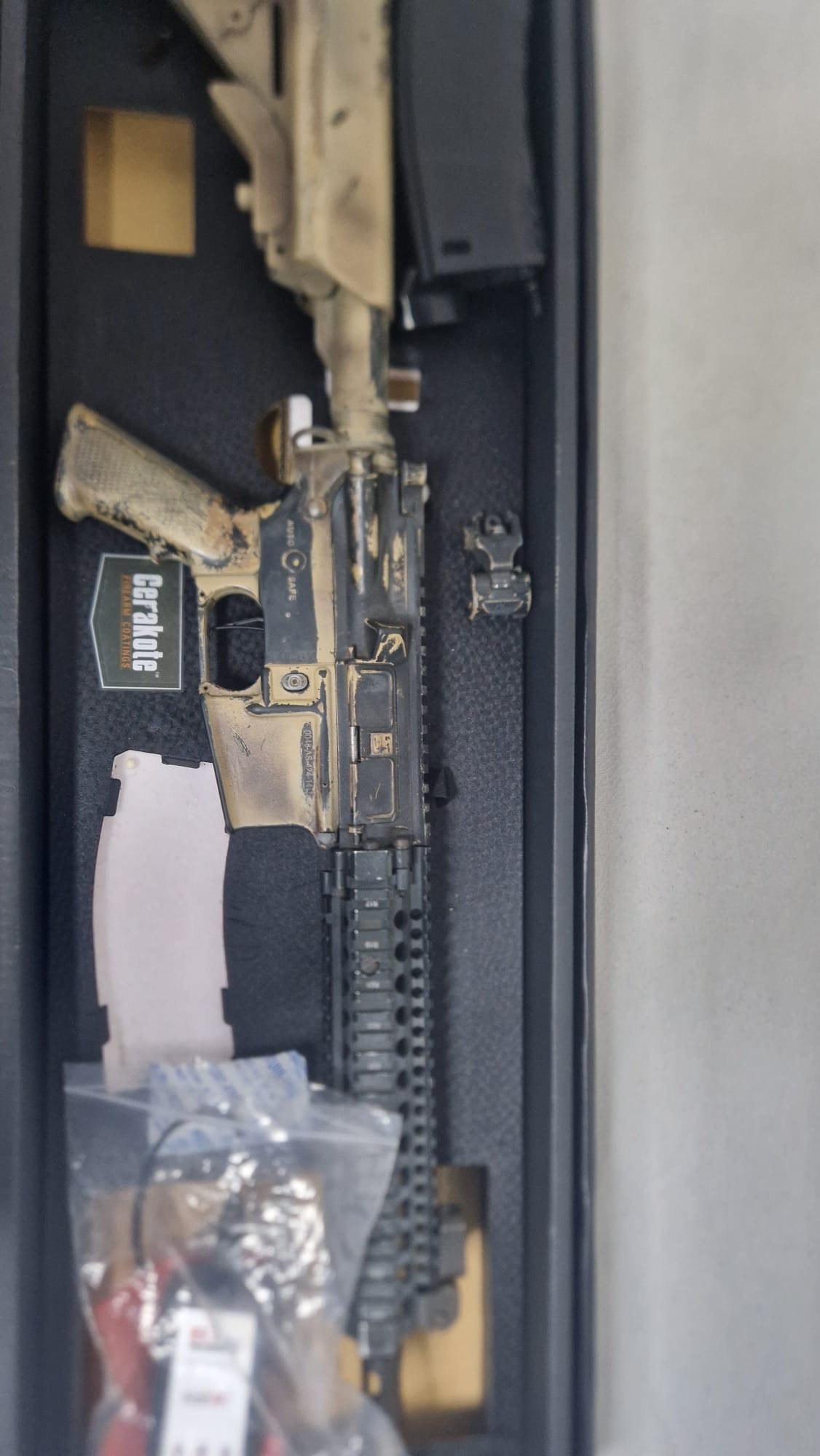 It's a perfectly funcional MK18 G&G M4 that includes 2 mags, a battery and charger adapter, a brand new three way battery, a new gearbox and ironsights.