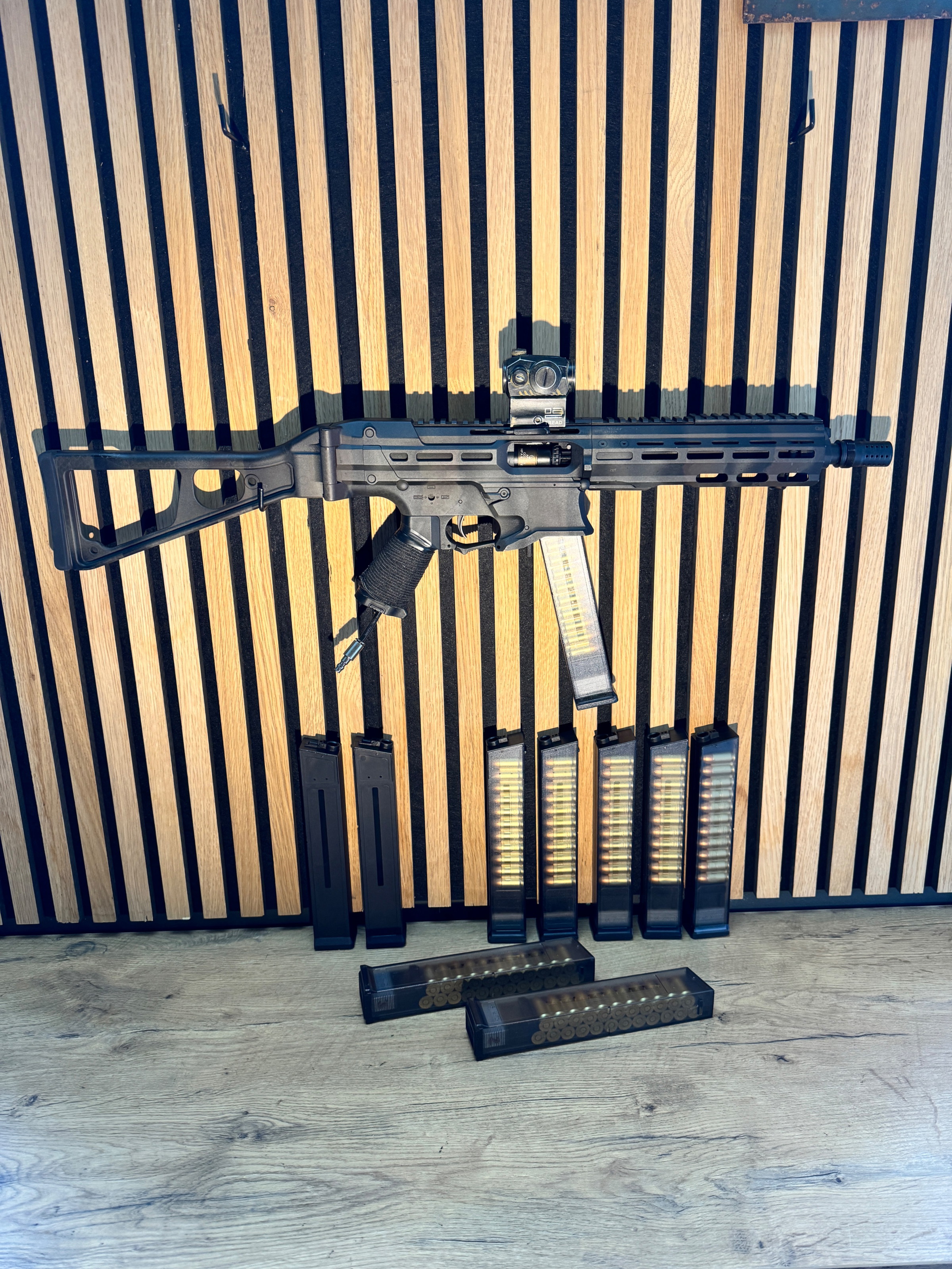 Schiet recht en stil en is single fire only. Voorzien van hele dikke paintjob die mooi diepte creëert en afgedicht met 2k harde matte coating. Compleet met 8 nieuwe 120 rounds transparante midcaps en 2 nieuwe 250 rounds zwarte highcaps. Werkt goed, constant en is stevig. Geen gebreken! Is opgebouwd en 1x mee geskirmd. Zonder schade.
