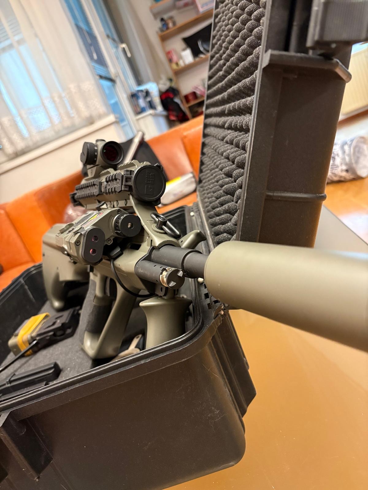 PEQ Lasermodul which has been fixed on the handguard.