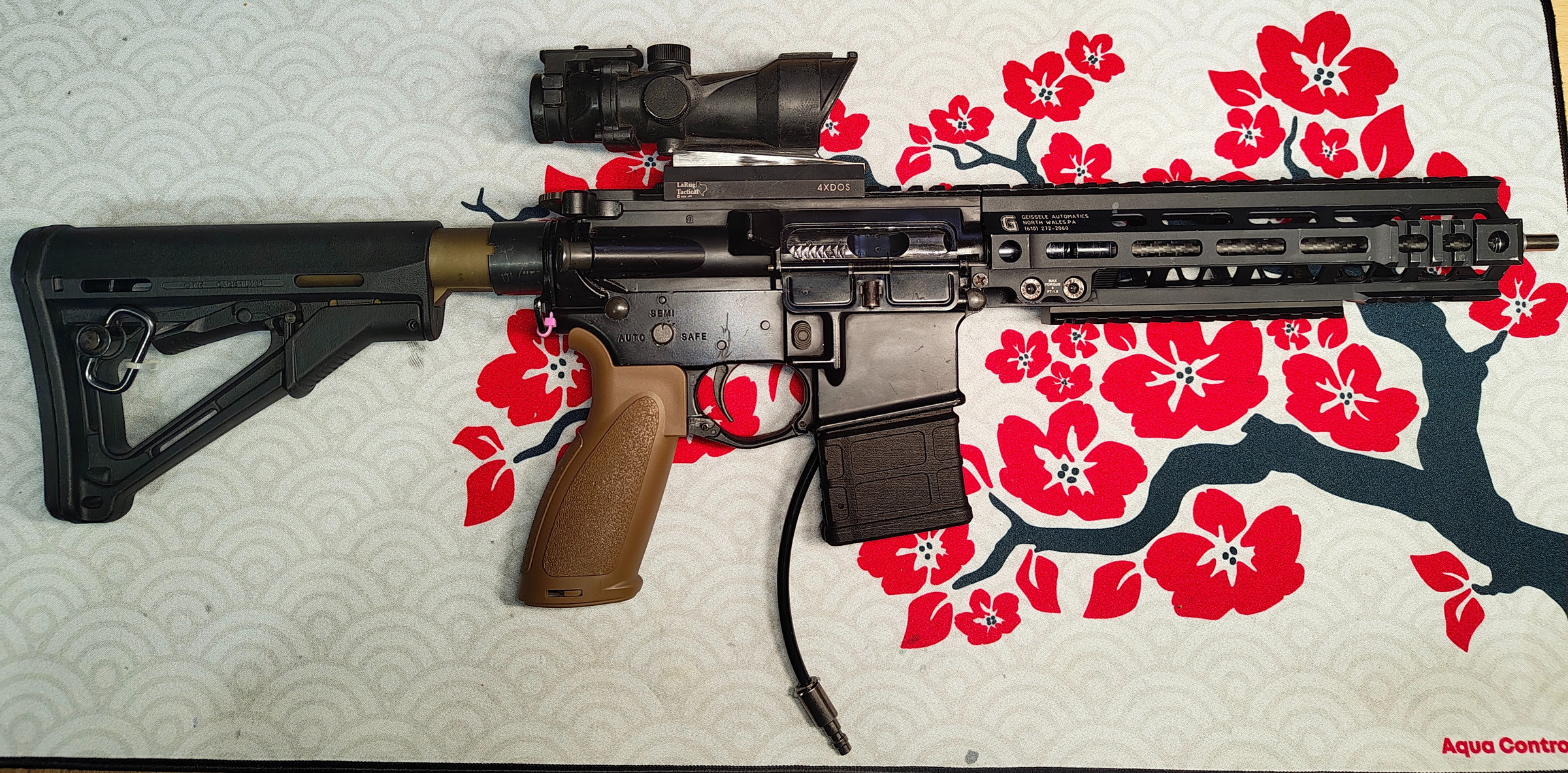 I'm selling my custom-built GHK M4 V2, which features a comprehensive list of performance and external upgrades. The rifle is set up as a highly-realistic and satisfying to use platform and shoots beautifully. I'm only selling to fund a new project.
