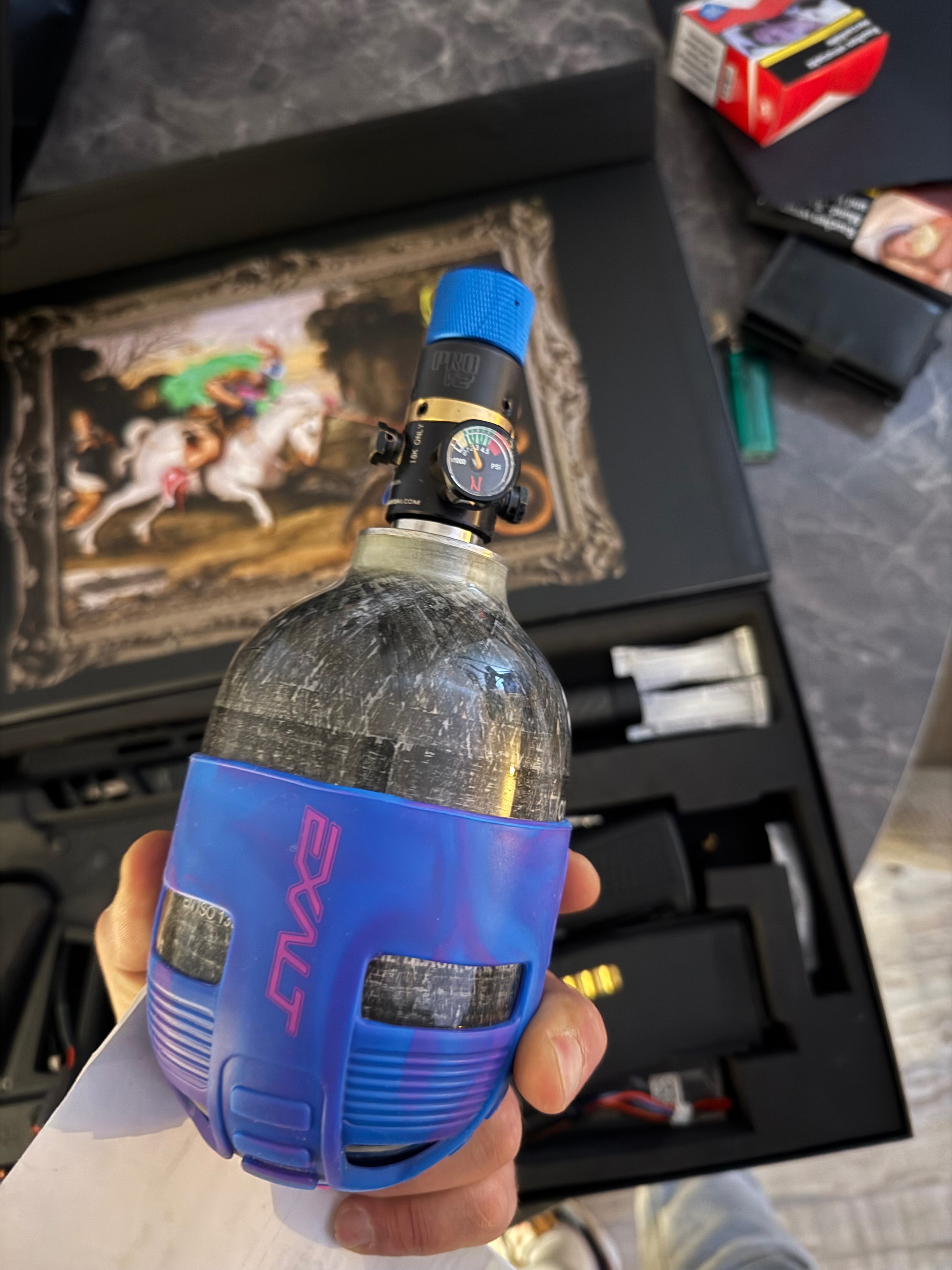 Ook zit de grip erin om een losse fles erop te zetten + de originele grip.