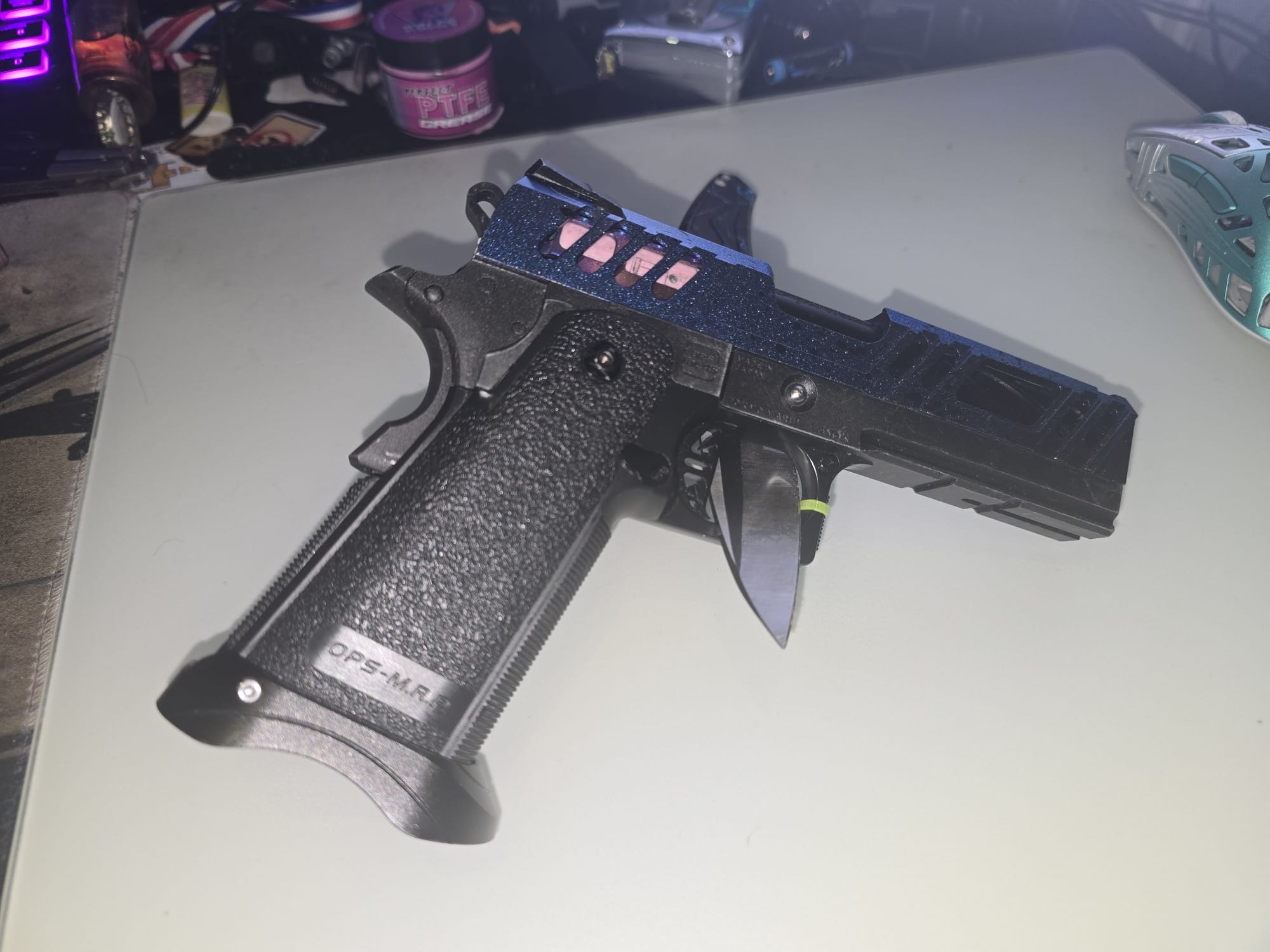 Slide is abconqueror slide from lacapa with a custom cerakote from wolfs coating.