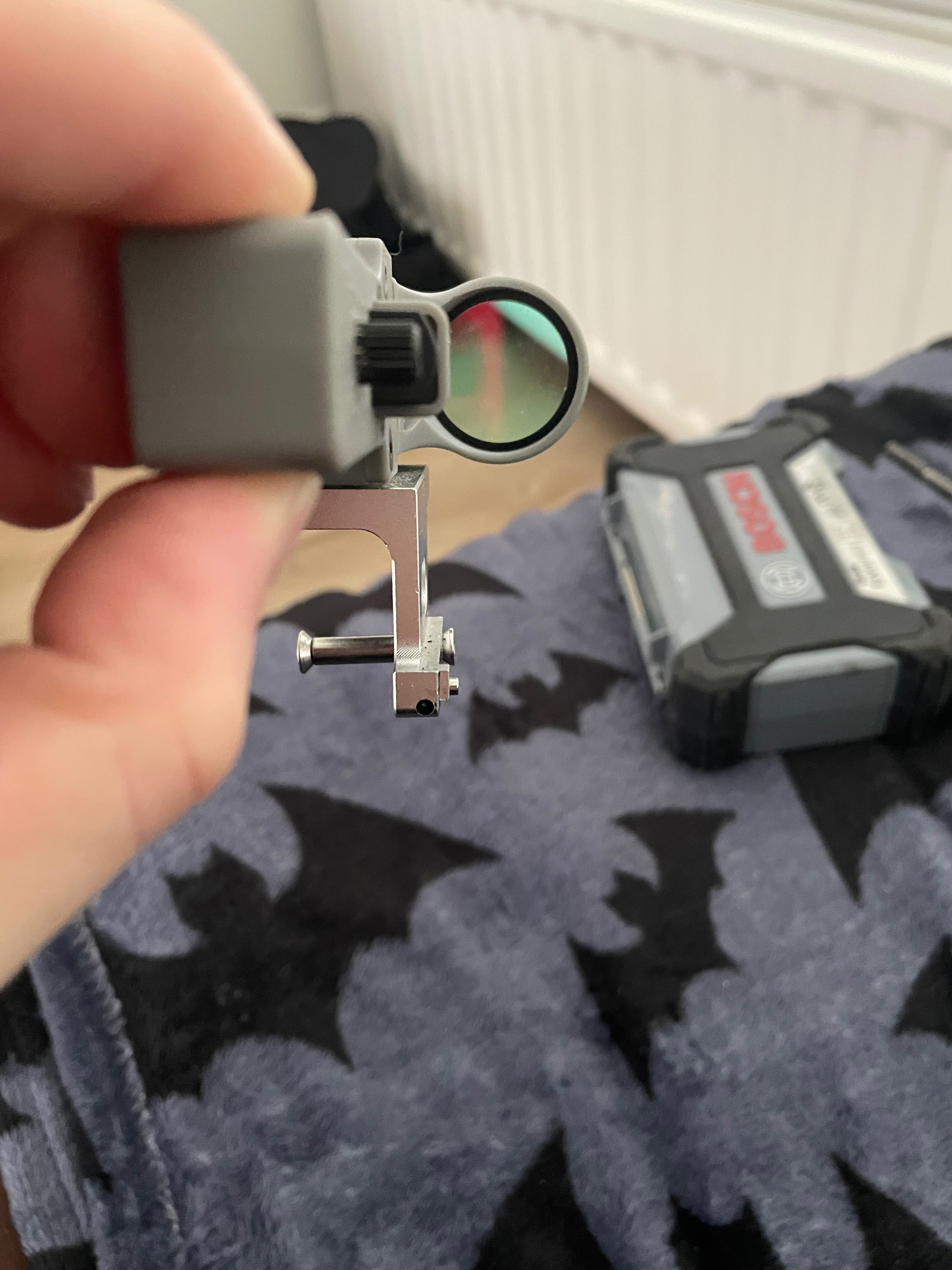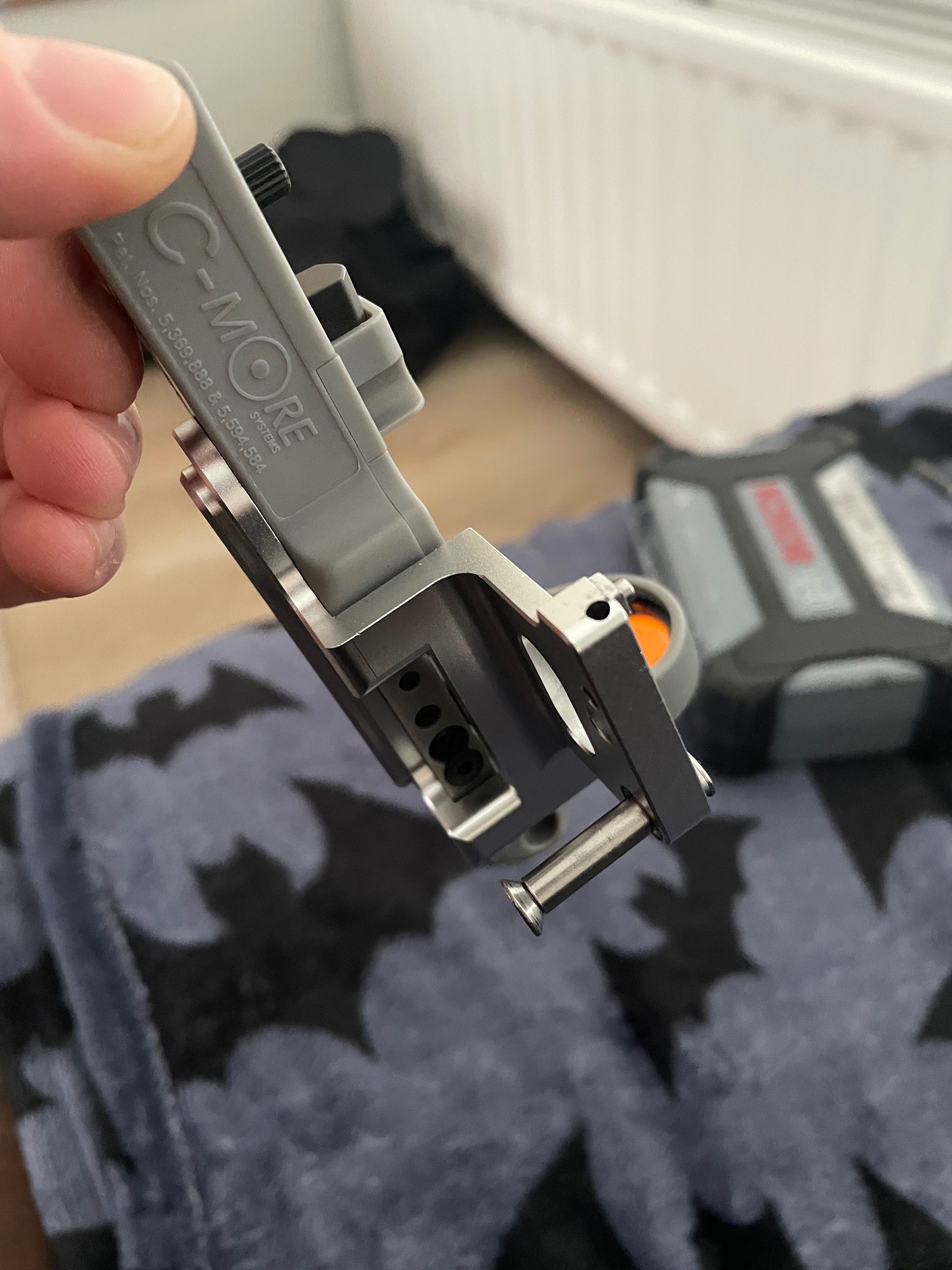 Het is een side mount die vast geborgd word via de pin die de upper en lower vast houd aan elkaar.