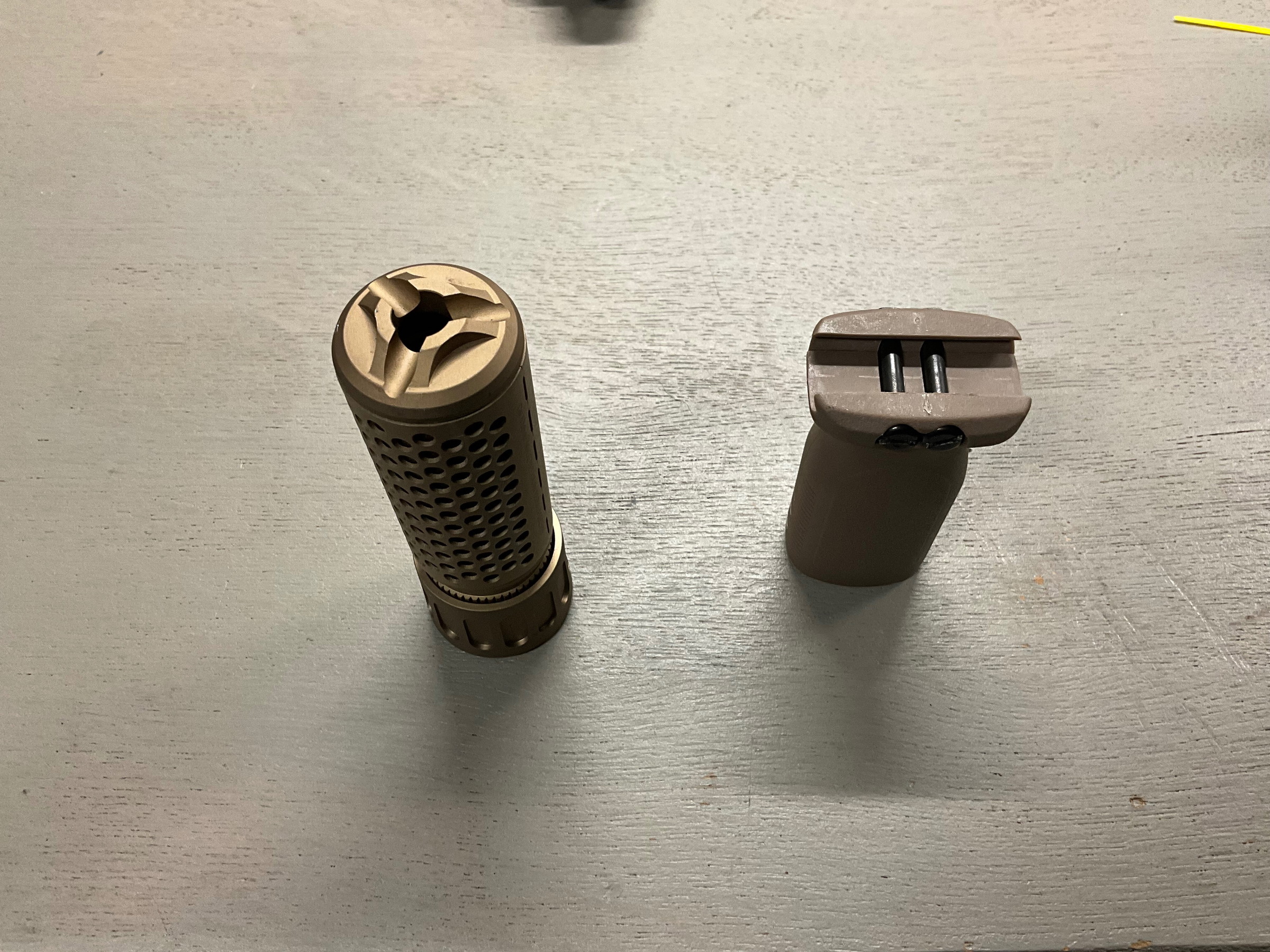 De toebehoren front grip en silencer kan met de replica gekocht worden of los ervan hetzelfde geld voor deze stukken ze worden niet verstuurd.
