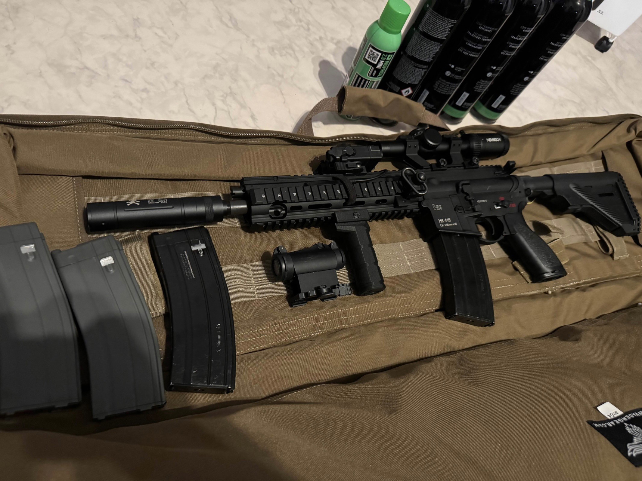 Replica is maar 2 - 3 keer op het veld gebruikt, is niet echt mijn playstyle. Staat afgesteld op 1.15 joule, heeft ingebouwde N-Pass voor verzetten van FPS. Geen lekkende magazijnen. Grijze magazijnen zijn 1 keer gebruikt. Replica is uitgekuist en ge-lubed na laatste skirm.