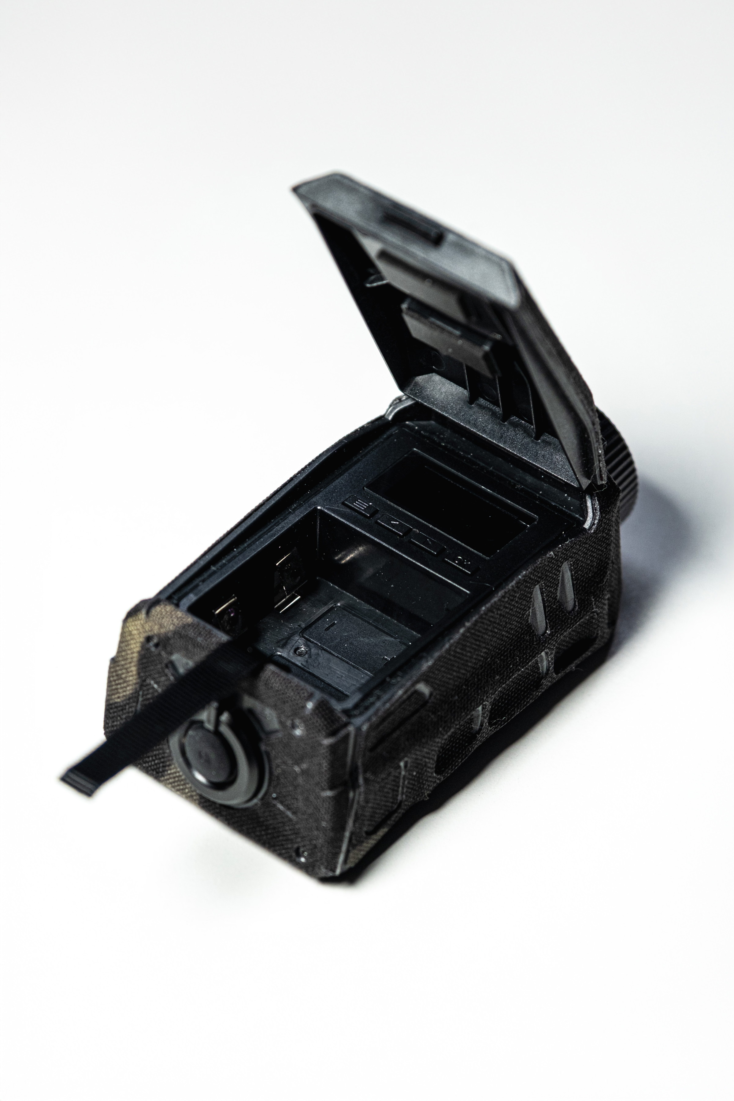 Auf der Kamera ist aktuell ein Multicam Black Optical Wrap angebracht – kann auf Wunsch rückstandslos entfernt werden. Die Kamera selbst ist schwarz.