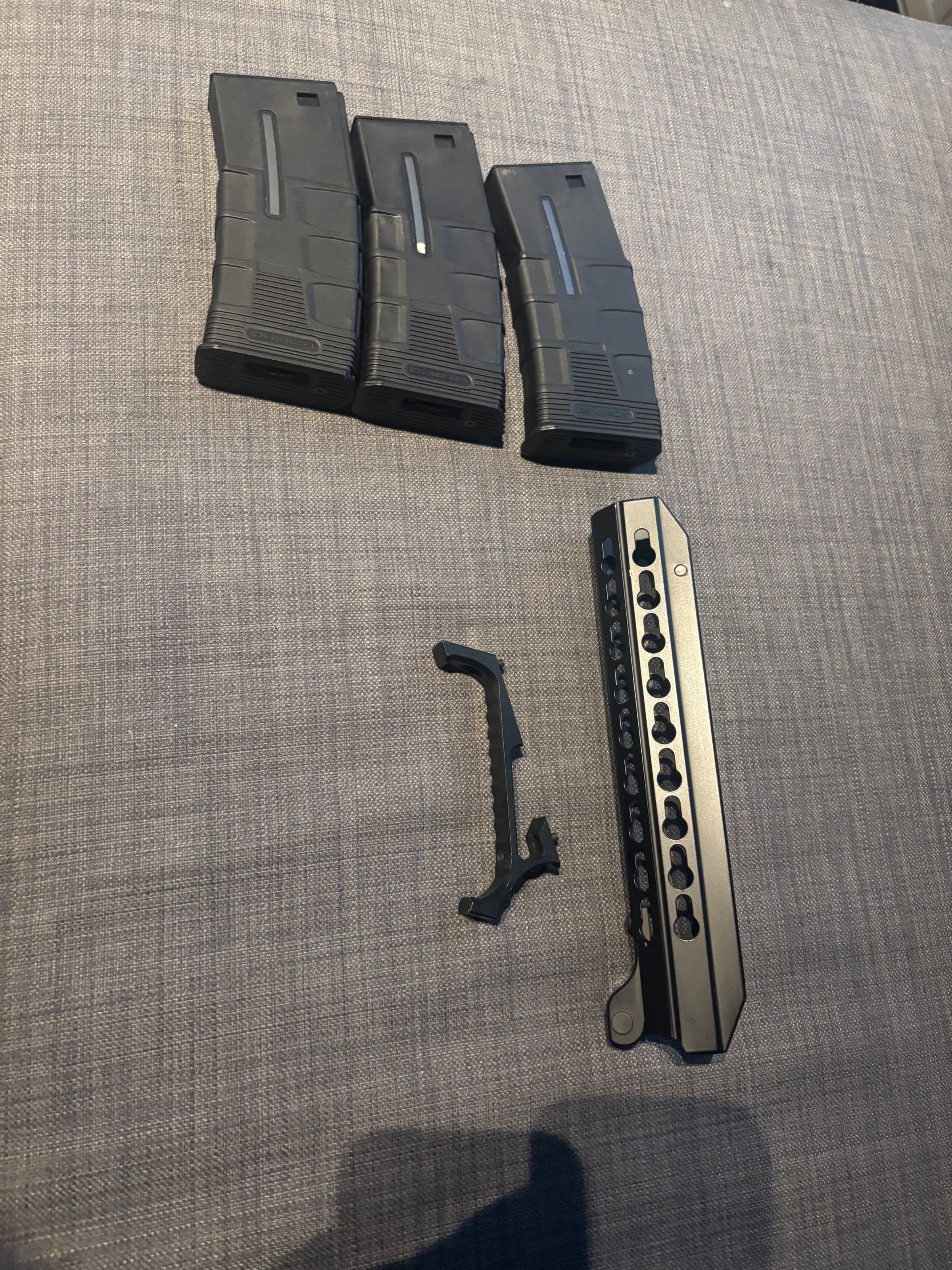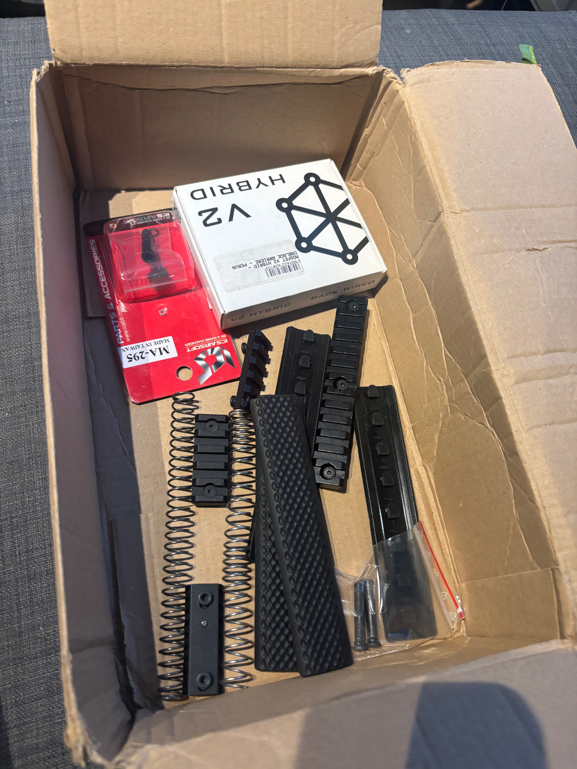 Komt voor de rest nog met 3 hi caps , de originele handguard , en nog wat spulletjes in de doos.Â