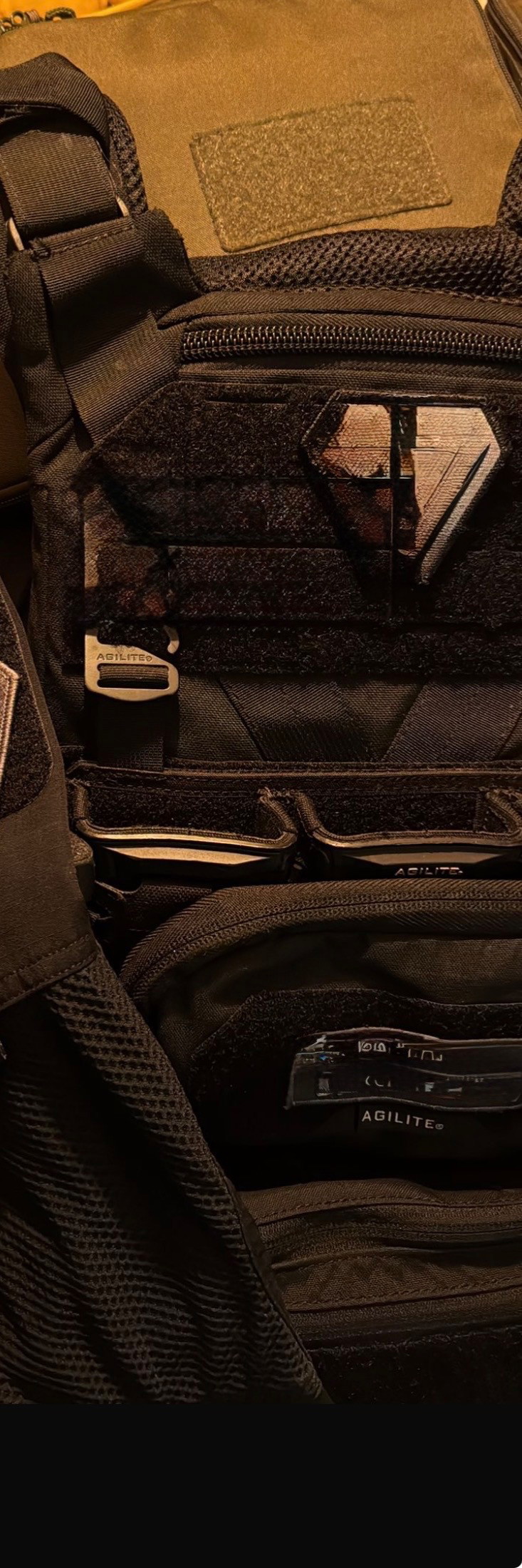 Ik verkoop mij zo goed als nieuwe plate carrier van agilite k19 plate carrier 3.0 zwart met hanger pouch, wide admin pouch triple mag pouch en double pistol pouch.